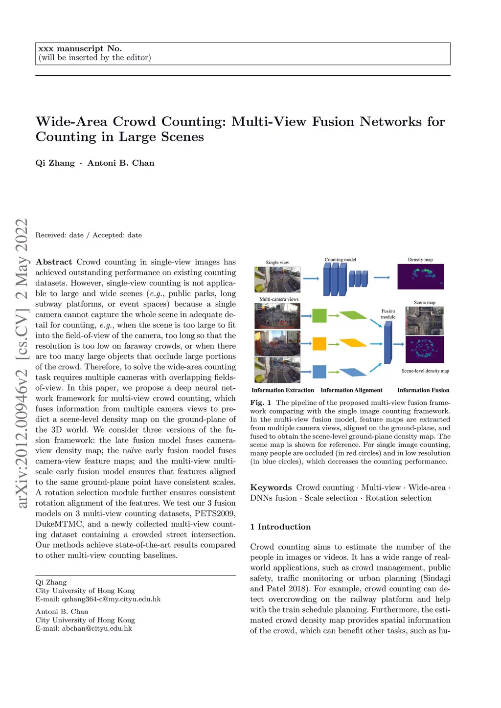 Wide-Area Crowd Counting: Multi-View Fusion Networks for Counting in