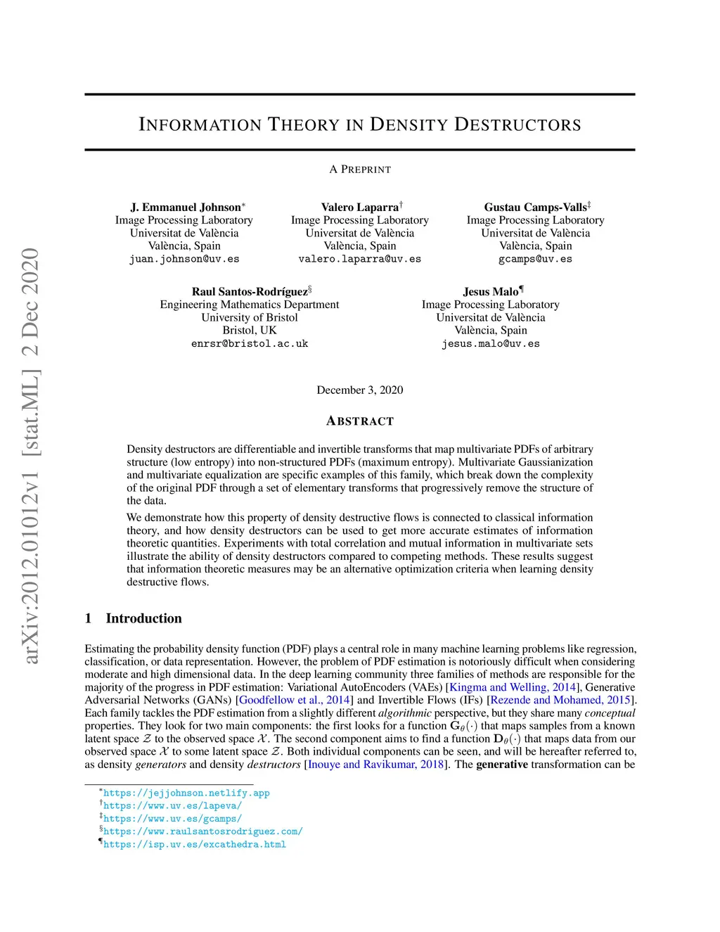 Density destructors are differentiable and invertible transforms that map multivariate PDFs of arbitrary structure (low entropy) into non-structured PDFs (maximum entropy). Multivariate Gaussianization and multivariate equalization are specific examples of this family, which break down the complexity of the original PDF through a set of elementary transforms that progressively remove the structure of the data. We demonstrate how this property of density destructive flows is connected to classical information theory, and how density destructors can be used to get more accurate estimates of information theoretic quantities. Experiments with total correlation and mutual information inmultivariate sets illustrate the ability of density destructors compared to competing methods. These results suggest that information theoretic measures may be an alternative optimization criteria when learning density destructive flows.