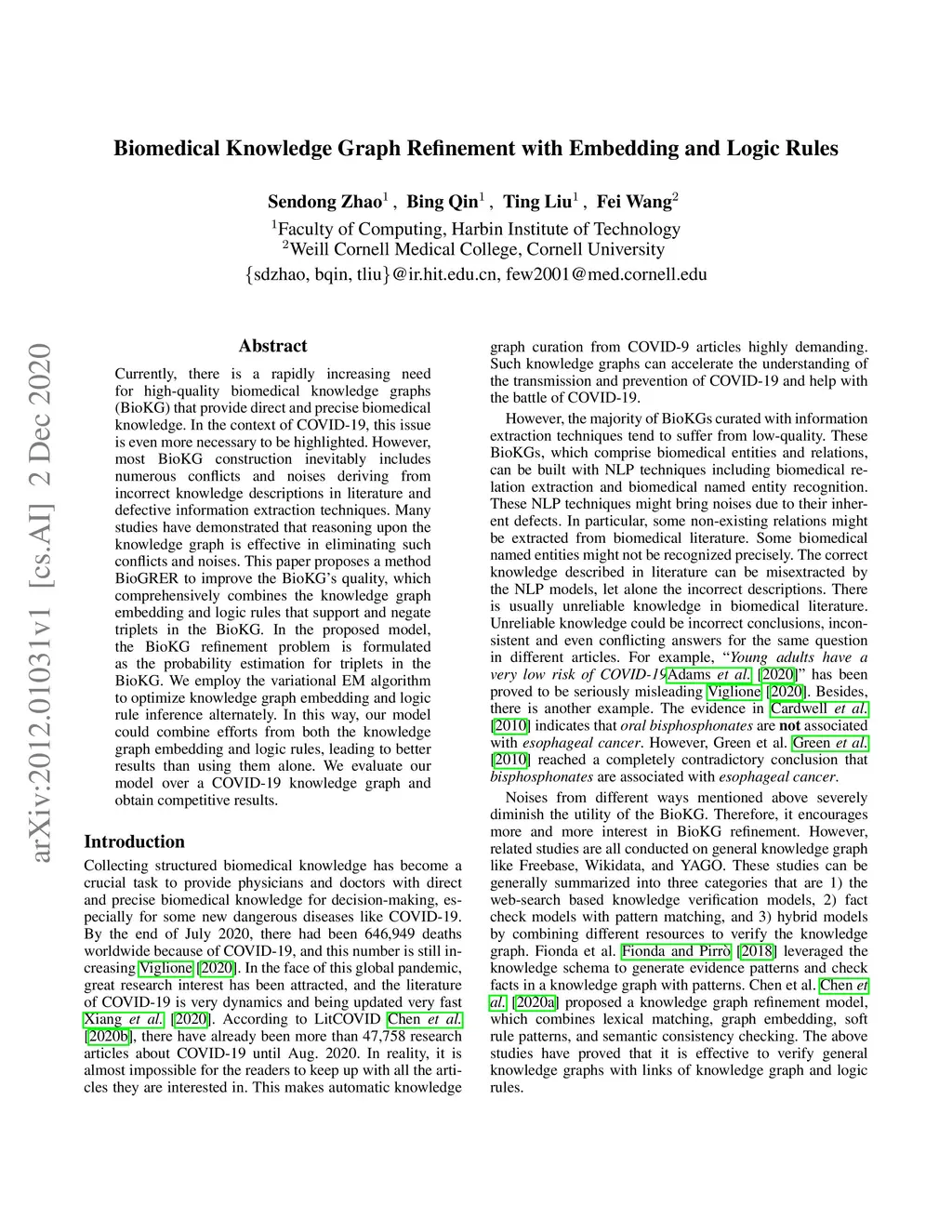 Biomedical Knowledge Graph Refinement with Embedding and Logic Rules