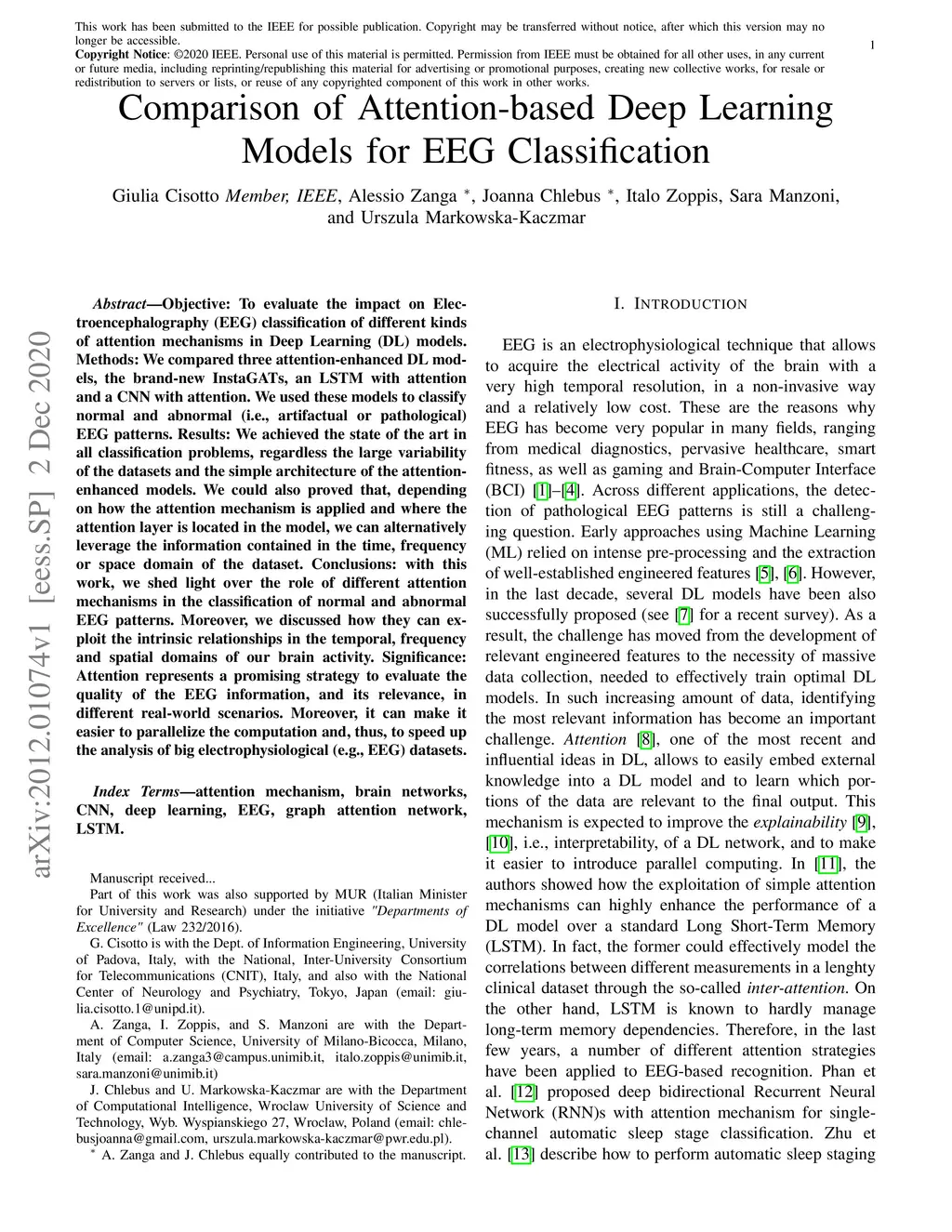 Comparison of Attention-based Deep Learning Models for EEG