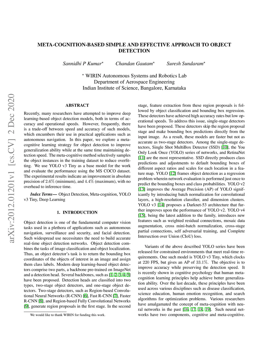Meta-Cognition-Based Simple And Effective Approach To Object Detection