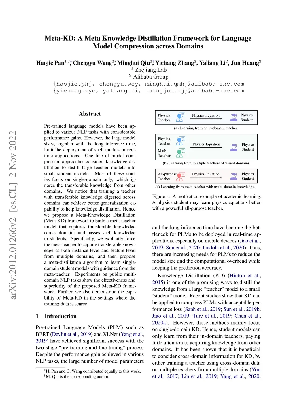 Meta-KD: A Meta Knowledge Distillation Framework for Language Model
