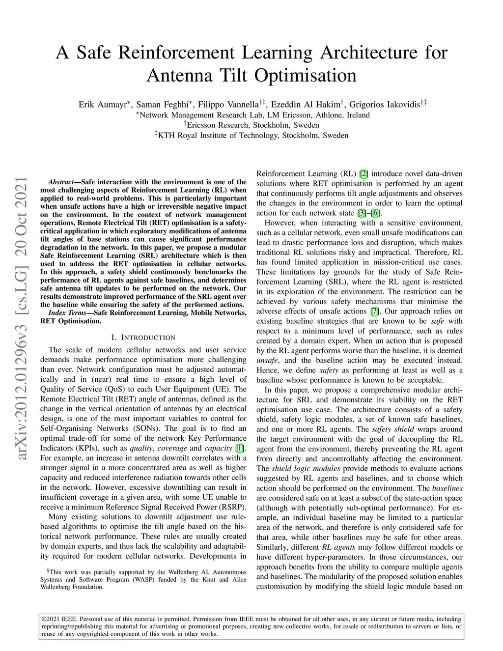 A Safe Reinforcement Learning Architecture for Antenna Tilt Optimisation