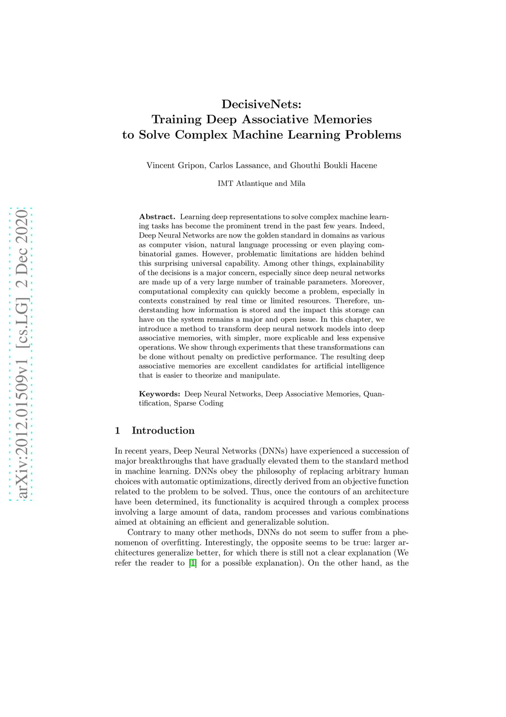 DecisiveNets: Training Deep Associative Memories to Solve Complex