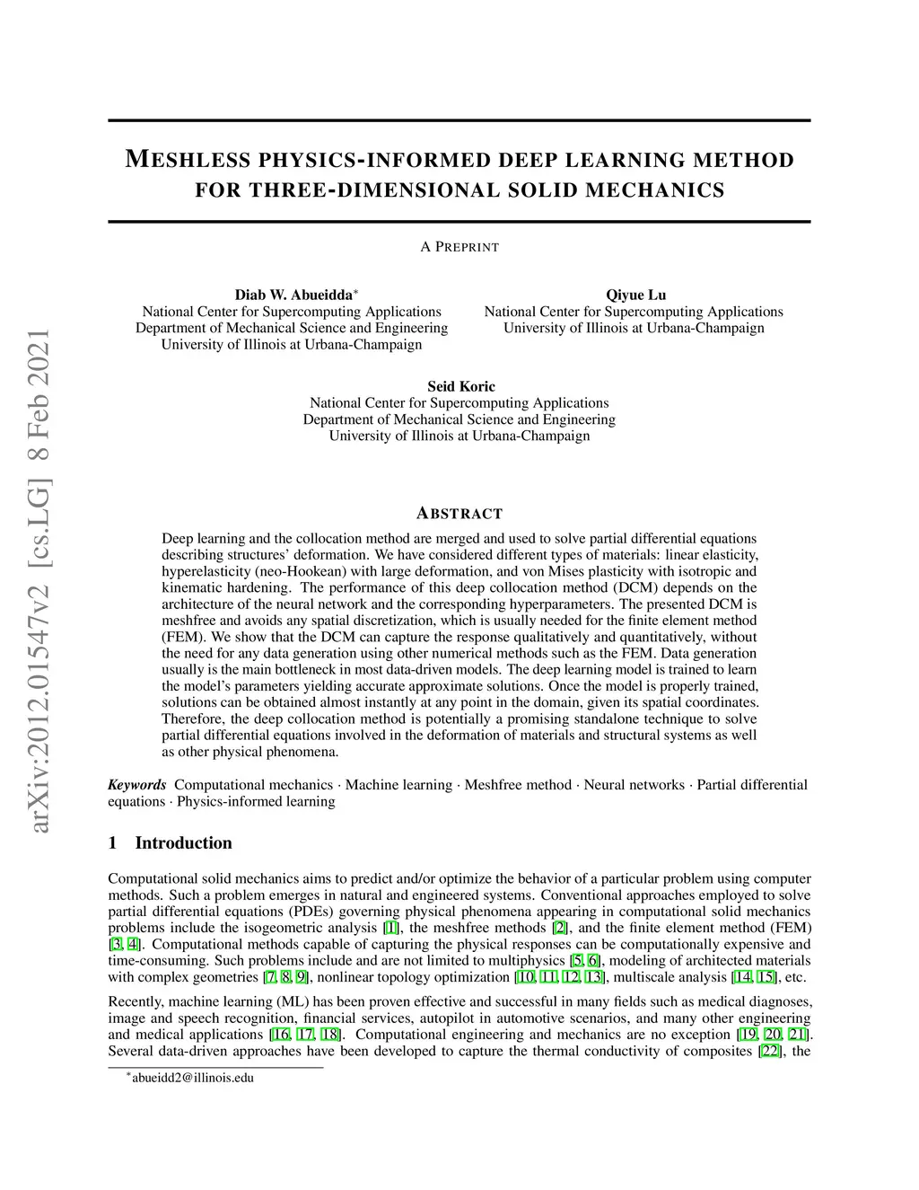 Meshless physics-informed deep learning method for three-dimensional
