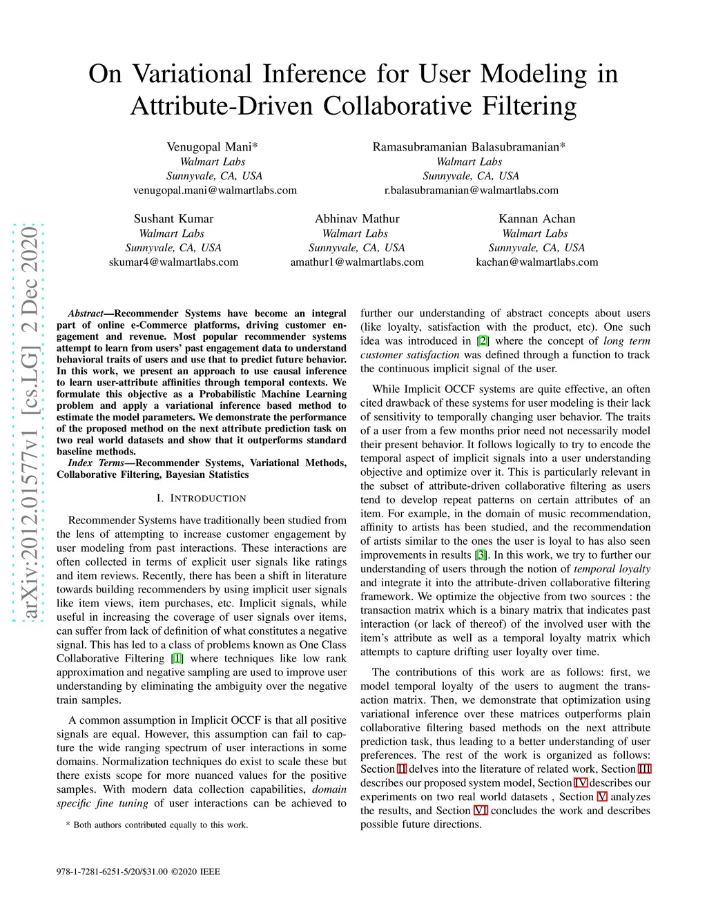 Recommender Systems have become an integral part of online e-Commerce platforms, driving customer engagement and revenue. Most popular recommender systems attempt to learn from users' past engagement data to understand behavioral traits of users and use that to predict future behavior. In this work, we present an approach to use causal inference to learn user-attribute affinities through temporal contexts. We formulate this objective as a Probabilistic Machine Learning problem and apply a variational inference based method to estimate the model parameters. We demonstrate the performance of the proposed method on the next attribute prediction task on two real world datasets and show that it outperforms standard baseline methods.
