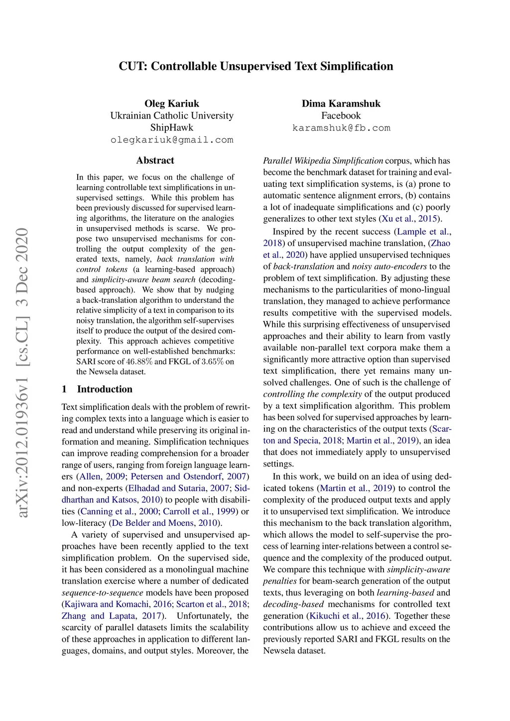 In this paper, we focus on the challenge of learning controllable text simplifications in unsupervised settings. While this problem has been previously discussed for supervised learning algorithms, the literature on the analogies in unsupervised methods is scarse. We propose two unsupervised mechanisms for controlling the output complexity of the generated texts, namely, back translation with control tokens (a learning-based approach) and simplicity-aware beam search (decoding-based approach). We show that by nudging a back-translation algorithm to understand the relative simplicity of a text in comparison to its noisy translation, the algorithm self-supervises itself to produce the output of the desired complexity. This approach achieves competitive performance on well-established benchmarks: SARI score of 46.88% and FKGL of 3.65% on the Newsela dataset.