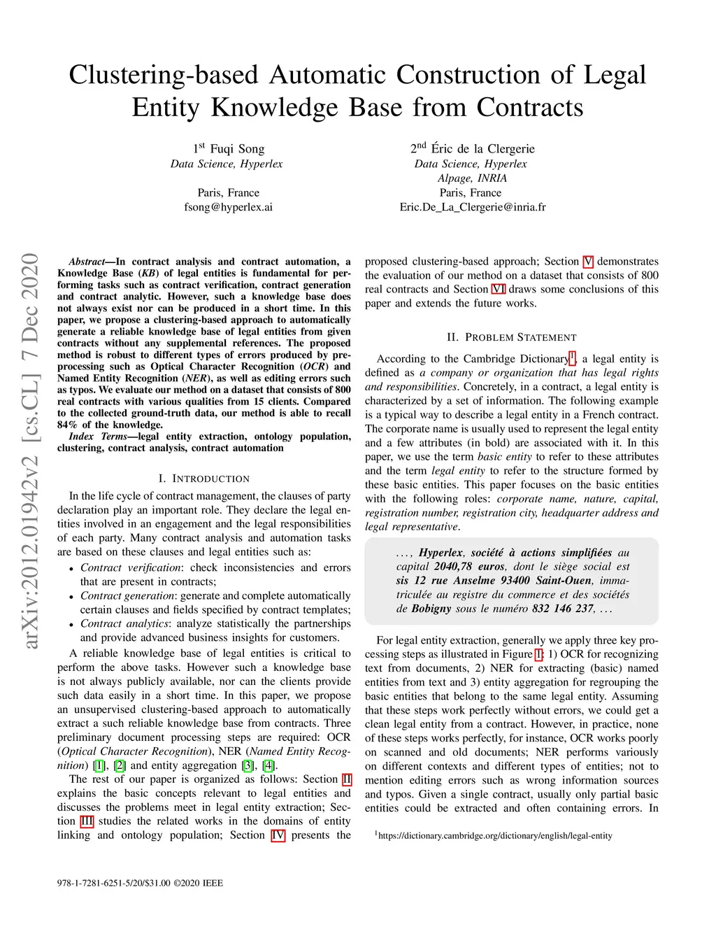 Clustering-based Automatic Construction of Legal Entity Knowledge Base