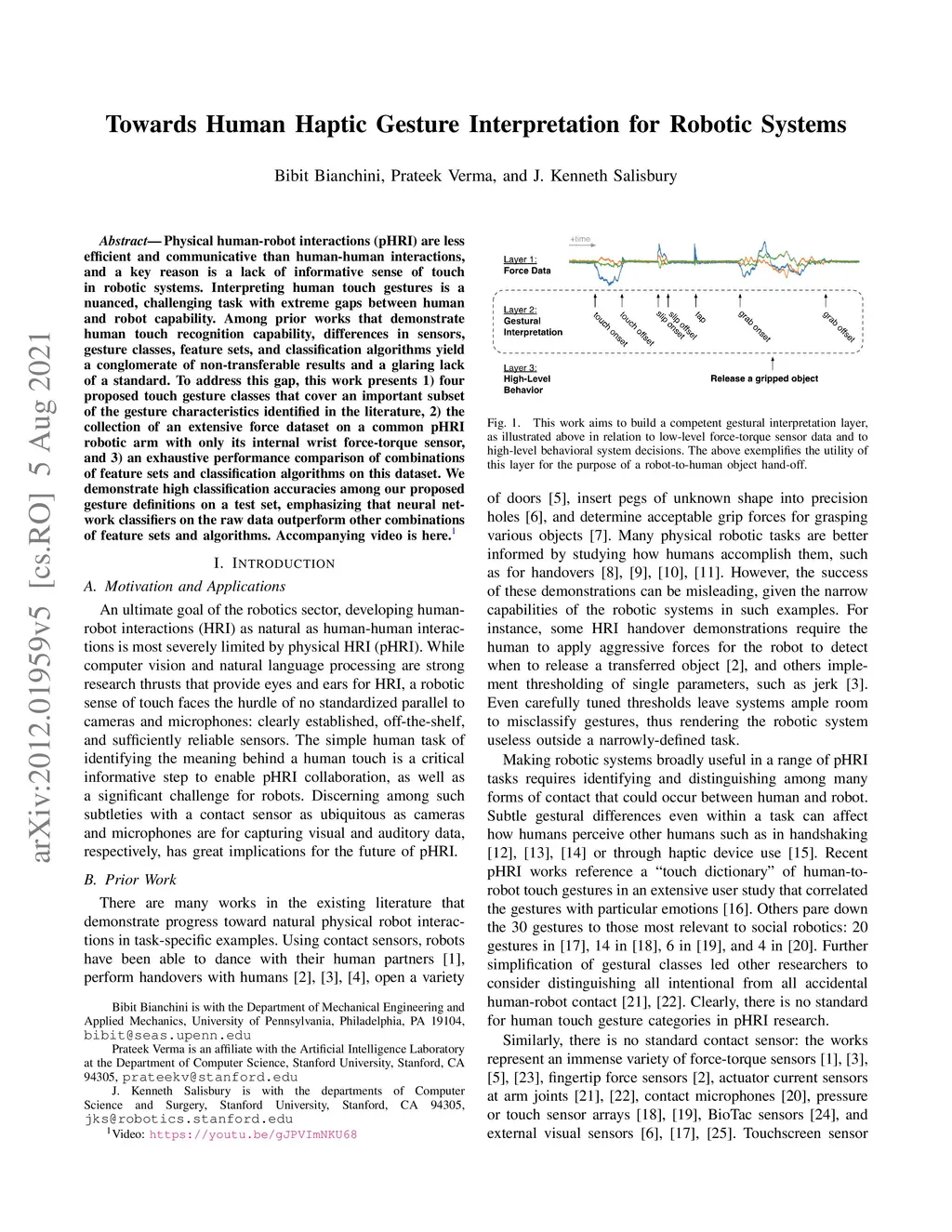 Towards Human Haptic Gesture Interpretation for Robotic Systems