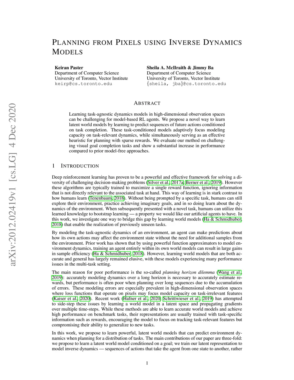 Planning from Pixels using Inverse Dynamics Models