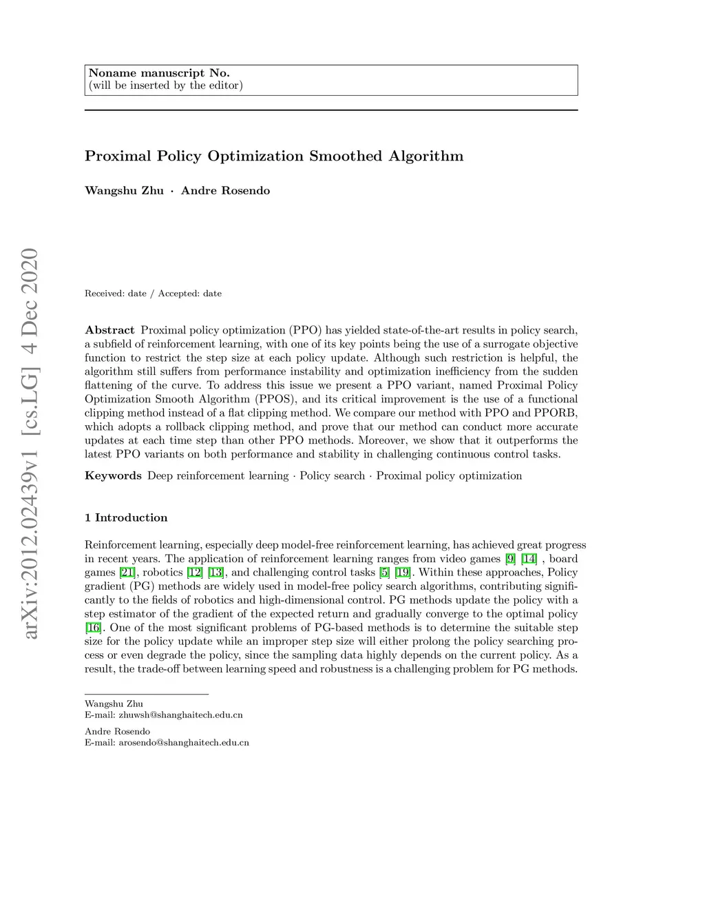 Proximal policy optimization (PPO) has yielded state-of-the-art results in policy search, a subfield of reinforcement learning, with one of its key points being the use of a surrogate objective function to restrict the step size at each policy update. Although such restriction is helpful, the algorithm still suffers from performance instability and optimization inefficiency from the sudden flattening of the curve. To address this issue we present a PPO variant, named Proximal Policy Optimization Smooth Algorithm (PPOS), and its critical improvement is the use of a functional clipping method instead of a flat clipping method. We compare our method with PPO and PPORB, which adopts a rollback clipping method, and prove that our method can conduct more accurate updates at each time step than other PPO methods. Moreover, we show that it outperforms the latest PPO variants on both performance and stability in challenging continuous control tasks.