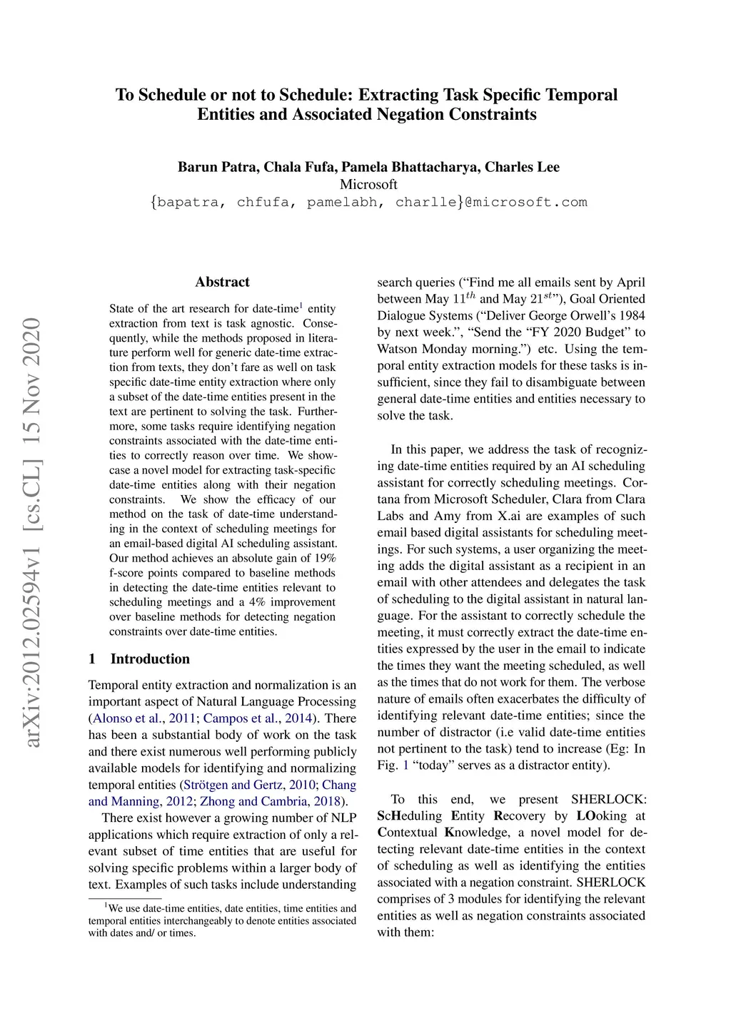 State of the art research for date-time entity extraction from text is task agnostic. Consequently, while the methods proposed in literature perform well for generic date-time extraction from texts, they don't fare as well on task specific date-time entity extraction where only a subset of the date-time entities present in the text are pertinent to solving the task. Furthermore, some tasks require identifying negation constraints associated with the date-time entities to correctly reason over time. We showcase a novel model for extracting task-specific date-time entities along with their negation constraints. We show the efficacy of our method on the task of date-time understanding in the context of scheduling meetings for an email-based digital AI scheduling assistant. Our method achieves an absolute gain of 19\% f-score points compared to baseline methods in detecting the date-time entities relevant to scheduling meetings and a 4\% improvement over baseline methods for detecting negation constraints over date-time entities.