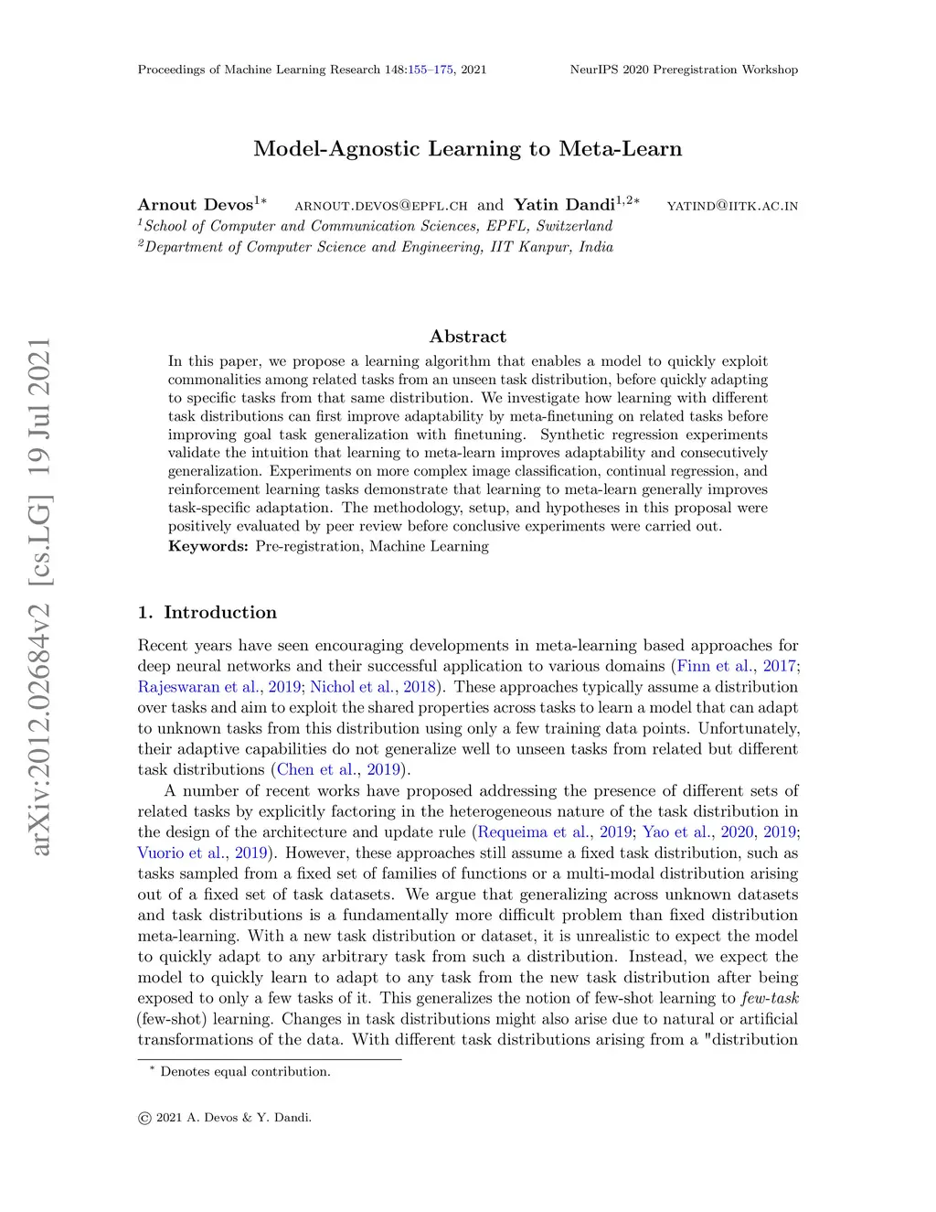 Model-Agnostic Learning to Meta-Learn