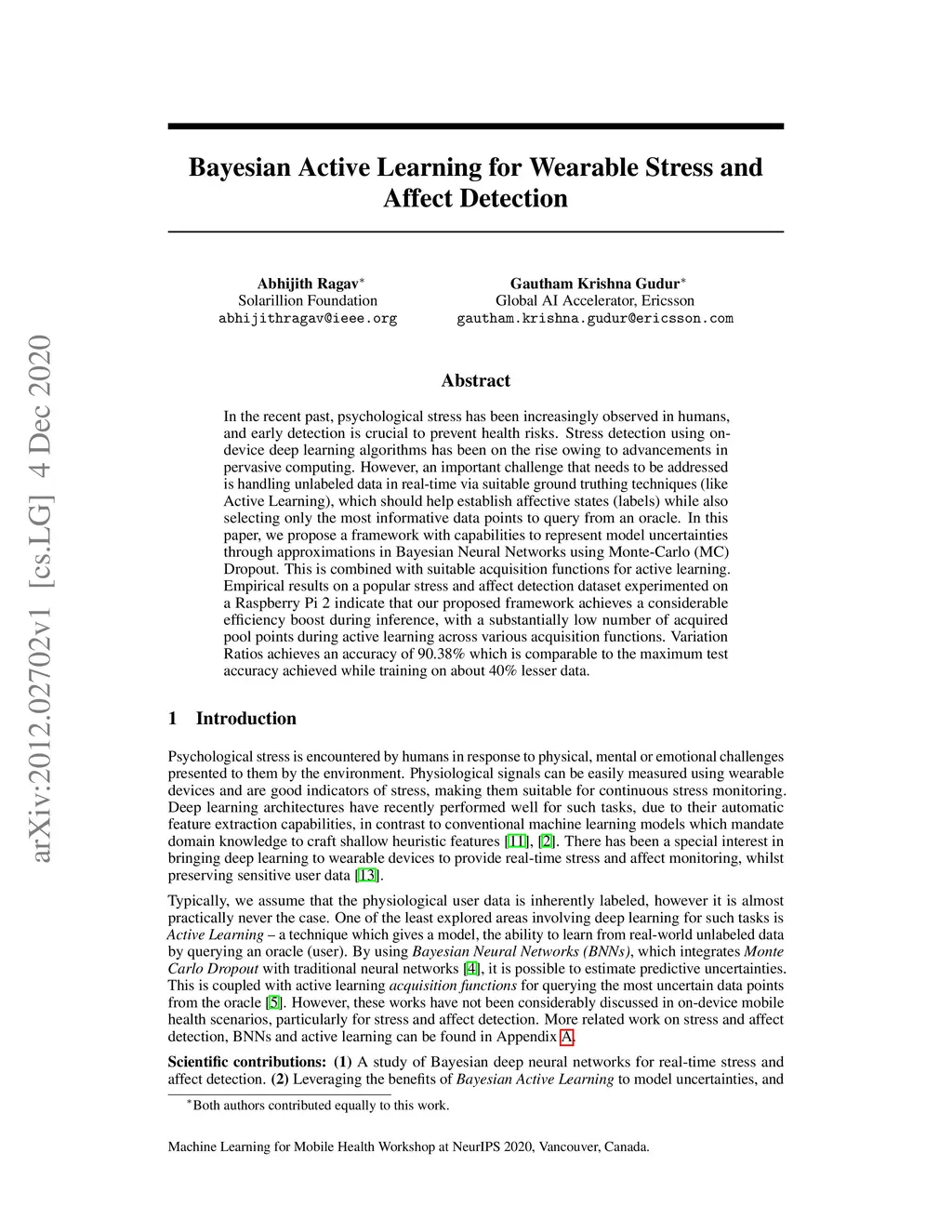 Bayesian Active Learning for Wearable Stress and Affect Detection