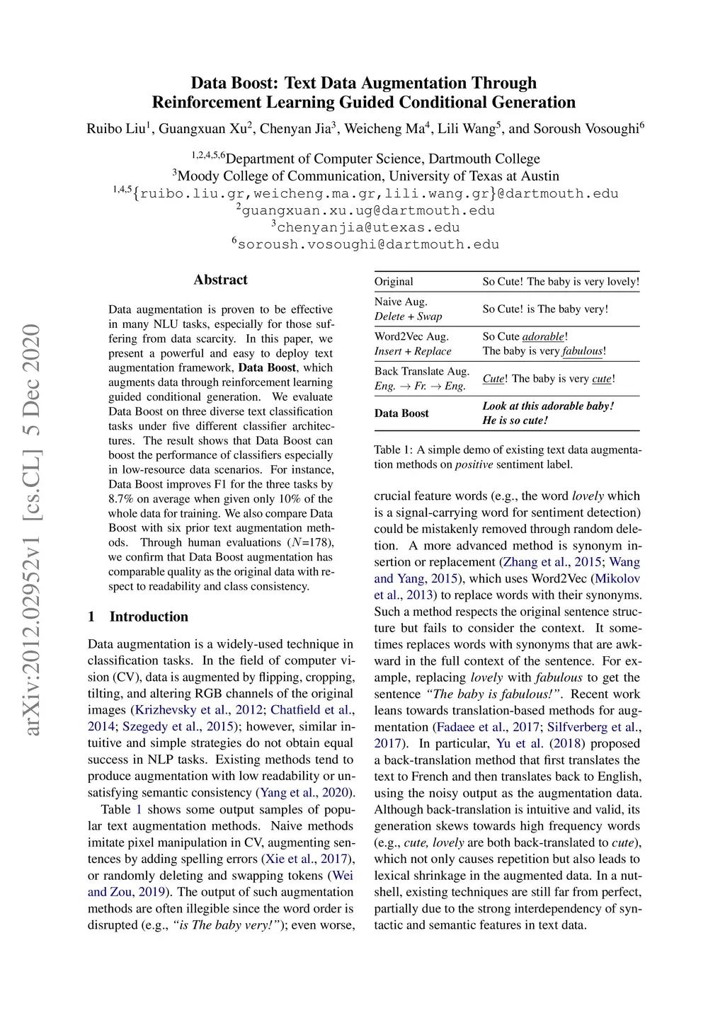 Data Boost: Text Data Augmentation Through Reinforcement Learning Guided