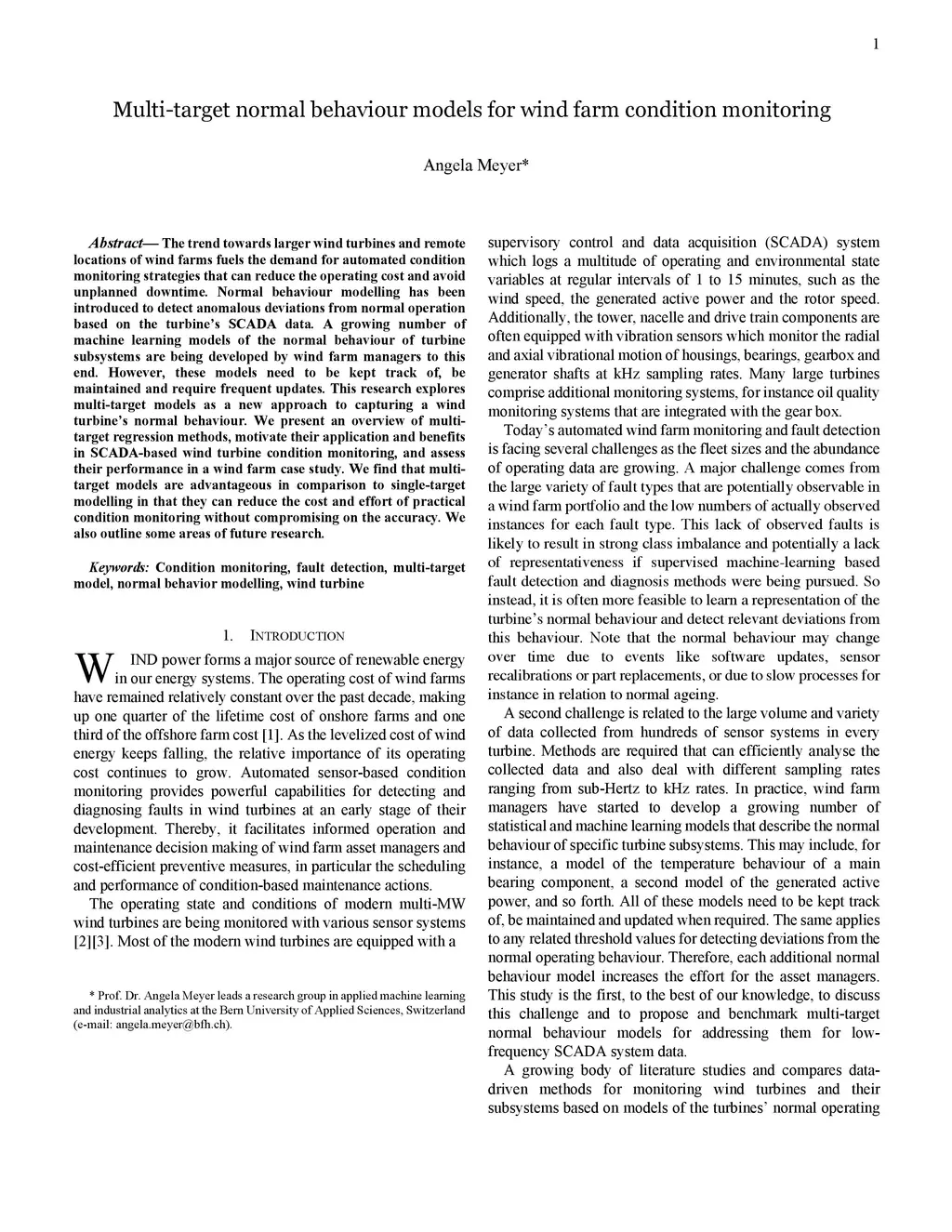 Multi-target normal behaviour models for wind farm condition monitoring
