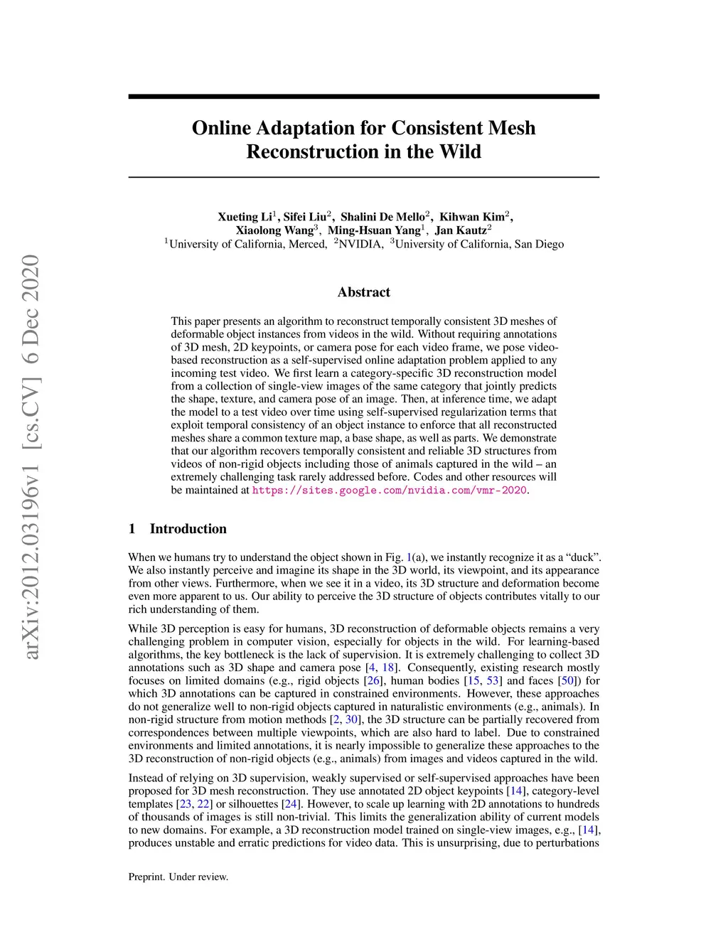 Online Adaptation for Consistent Mesh Reconstruction in the Wild
