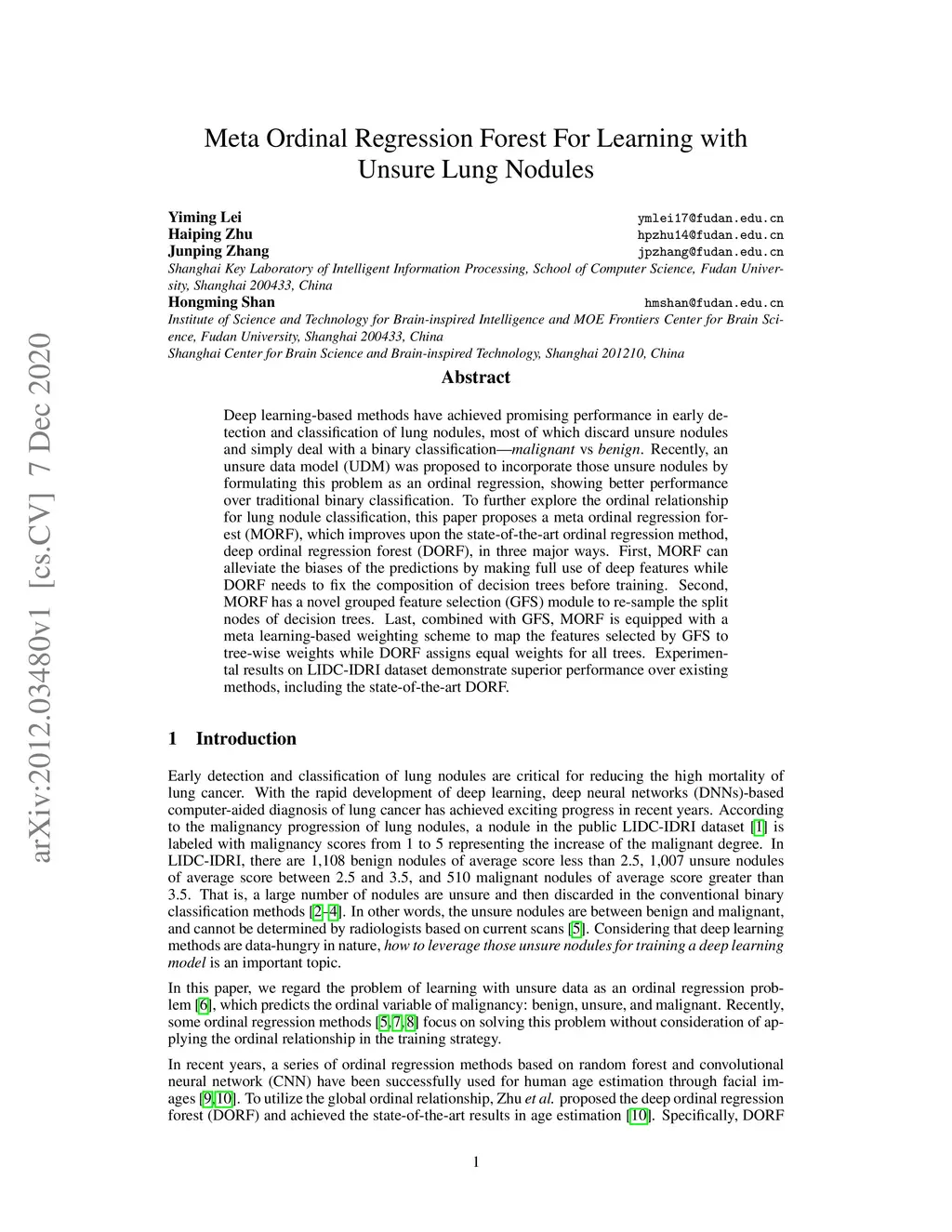 Meta Ordinal Regression Forest For Learning with Unsure Lung Nodules