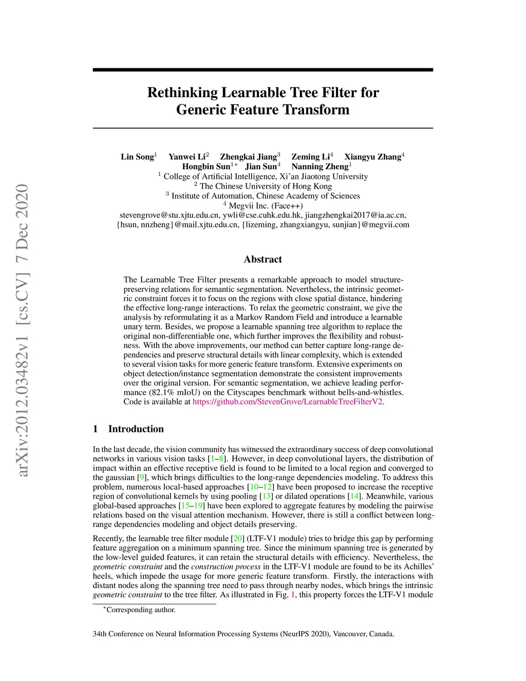 The Learnable Tree Filter presents a remarkable approach to model structure-preserving relations for semantic segmentation. Nevertheless, the intrinsic geometric constraint forces it to focus on the regions with close spatial distance, hindering the effective long-range interactions. To relax the geometric constraint, we give the analysis by reformulating it as a Markov Random Field and introduce a learnable unary term. Besides, we propose a learnable spanning tree algorithm to replace the original non-differentiable one, which further improves the flexibility and robustness. With the above improvements, our method can better capture long-range dependencies and preserve structural details with linear complexity, which is extended to several vision tasks for more generic feature transform. Extensive experiments on object detection/instance segmentation demonstrate the consistent improvements over the original version. For semantic segmentation, we achieve leading performance (82.1% mIoU) on the Cityscapes benchmark without bells-and-whistles. Code is available at https://github.com/StevenGrove/LearnableTreeFilterV2.