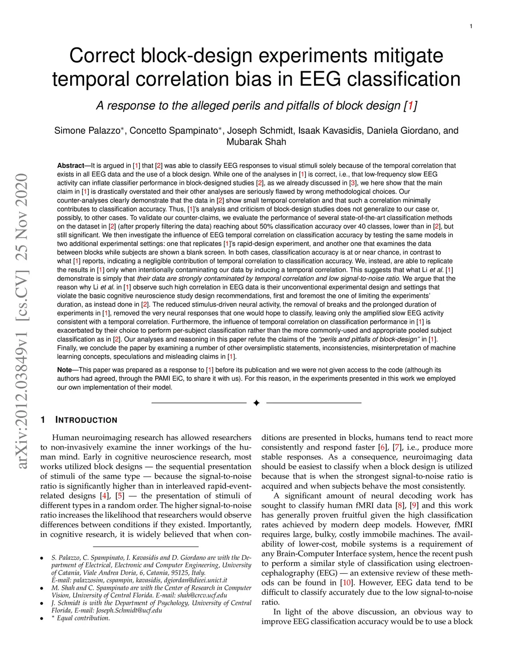 It is argued in [1] that [2] was able to classify EEG responses to visual stimuli solely because of the temporal correlation that exists in all EEG data and the use of a block design. We here show that the main claim in [1] is drastically overstated and their other analyses are seriously flawed by wrong methodological choices. To validate our counter-claims, we evaluate the performance of state-of-the-art methods on the dataset in [2] reaching about 50% classification accuracy over 40 classes, lower than in [2], but still significant. We then investigate the influence of EEG temporal correlation on classification accuracy by testing the same models in two additional experimental settings: one that replicates [1]'s rapid-design experiment, and another one that examines the data between blocks while subjects are shown a blank screen. In both cases, classification accuracy is at or near chance, in contrast to what [1] reports, indicating a negligible contribution of temporal correlation to classification accuracy. We, instead, are able to replicate the results in [1] only when intentionally contaminating our data by inducing a temporal correlation. This suggests that what Li et al. [1] demonstrate is that their data are strongly contaminated by temporal correlation and low signal-to-noise ratio. We argue that the reason why Li et al. [1] observe such high correlation in EEG data is their unconventional experimental design and settings that violate the basic cognitive neuroscience design recommendations, first and foremost the one of limiting the experiments' duration, as instead done in [2]. Our analyses in this paper refute the claims of the "perils and pitfalls of block-design" in [1]. Finally, we conclude the paper by examining a number of other oversimplistic statements, inconsistencies, misinterpretation of machine learning concepts, speculations and misleading claims in [1].