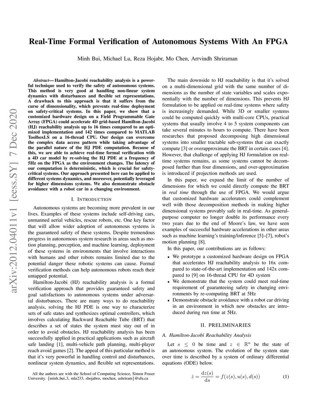 Real-Time Formal Verification of Autonomous Systems With An FPGA