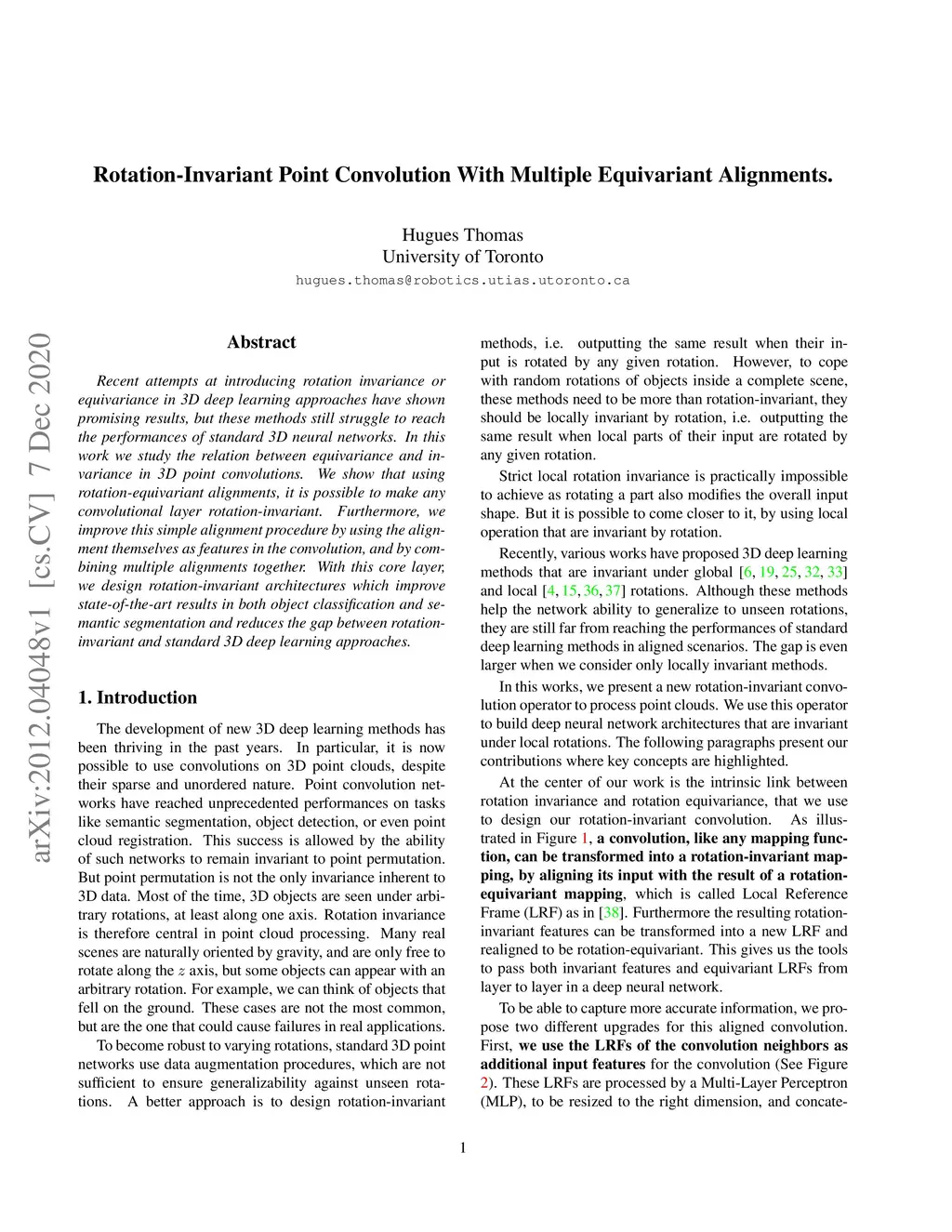 Recent attempts at introducing rotation invariance or equivariance in 3D deep learning approaches have shown promising results, but these methods still struggle to reach the performances of standard 3D neural networks. In this work we study the relation between equivariance and invariance in 3D point convolutions. We show that using rotation-equivariant alignments, it is possible to make any convolutional layer rotation-invariant. Furthermore, we improve this simple alignment procedure by using the alignment themselves as features in the convolution, and by combining multiple alignments together. With this core layer, we design rotation-invariant architectures which improve state-of-the-art results in both object classification and semantic segmentation and reduces the gap between rotation-invariant and standard 3D deep learning approaches.