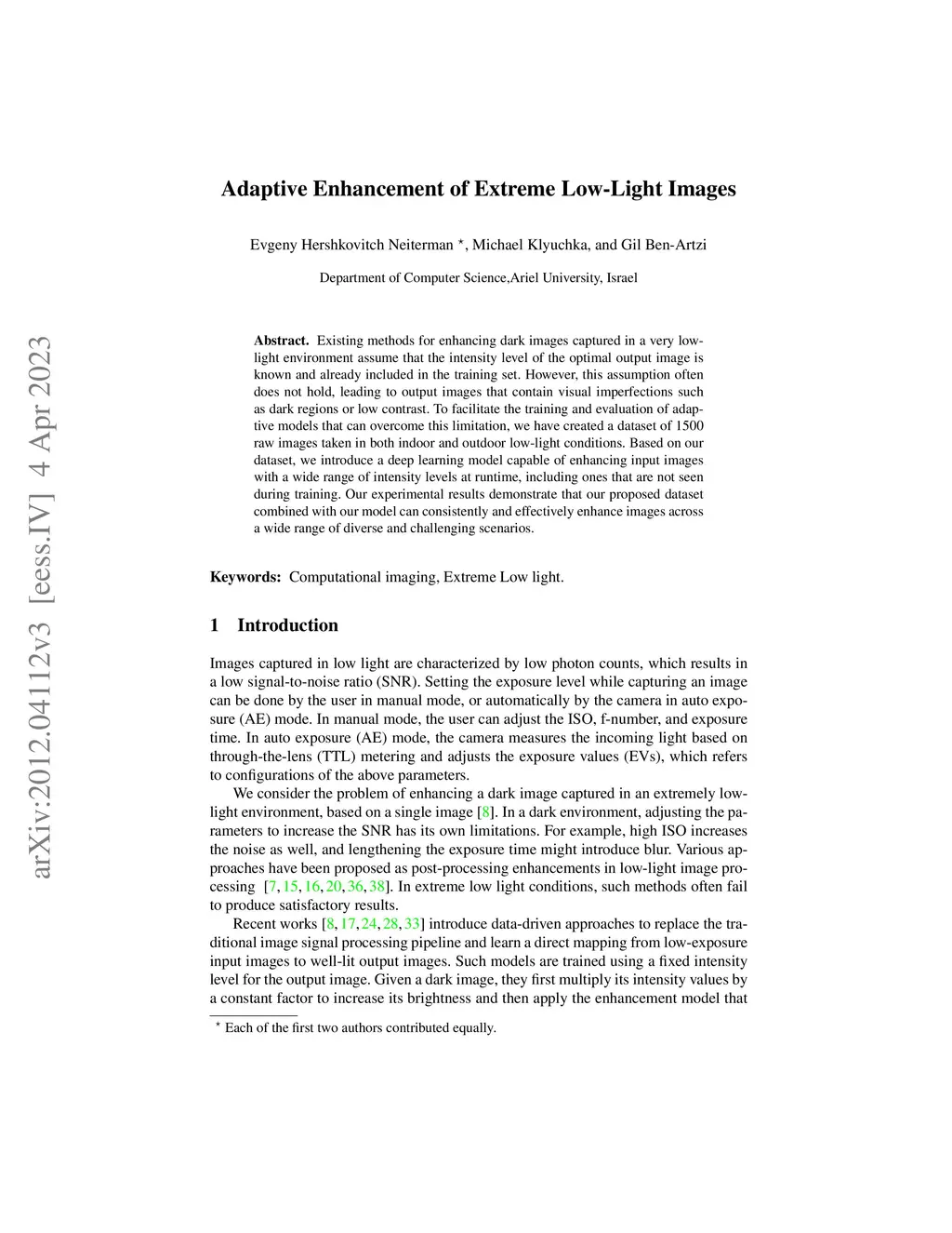 Adaptive Enhancement of Extreme Low-Light Images
