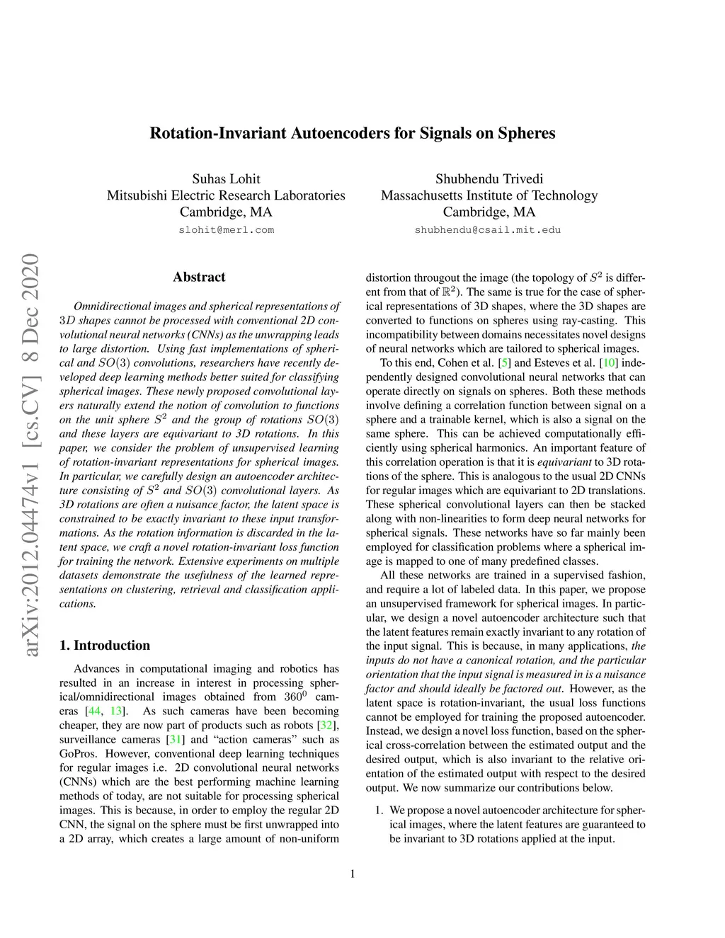 Omnidirectional images and spherical representations of shapes cannot be processed with conventional 2D convolutional neural networks (CNNs) as the unwrapping leads to large distortion. Using fast implementations of spherical and convolutions, researchers have recently developed deep learning methods better suited for classifying spherical images. These newly proposed convolutional layers naturally extend the notion of convolution to functions on the unit sphere and the group of rotations and these layers are equivariant to 3D rotations. In this paper, we consider the problem of unsupervised learning of rotation-invariant representations for spherical images. In particular, we carefully design an autoencoder architecture consisting of and convolutional layers. As 3D rotations are often a nuisance factor, the latent space is constrained to be exactly invariant to these input transformations. As the rotation information is discarded in the latent space, we craft a novel rotation-invariant loss function for training the network. Extensive experiments on multiple datasets demonstrate the usefulness of the learned representations on clustering, retrieval and classification applications.