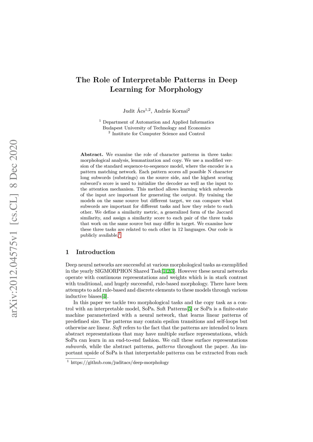 The Role of Interpretable Patterns in Deep Learning for Morphology