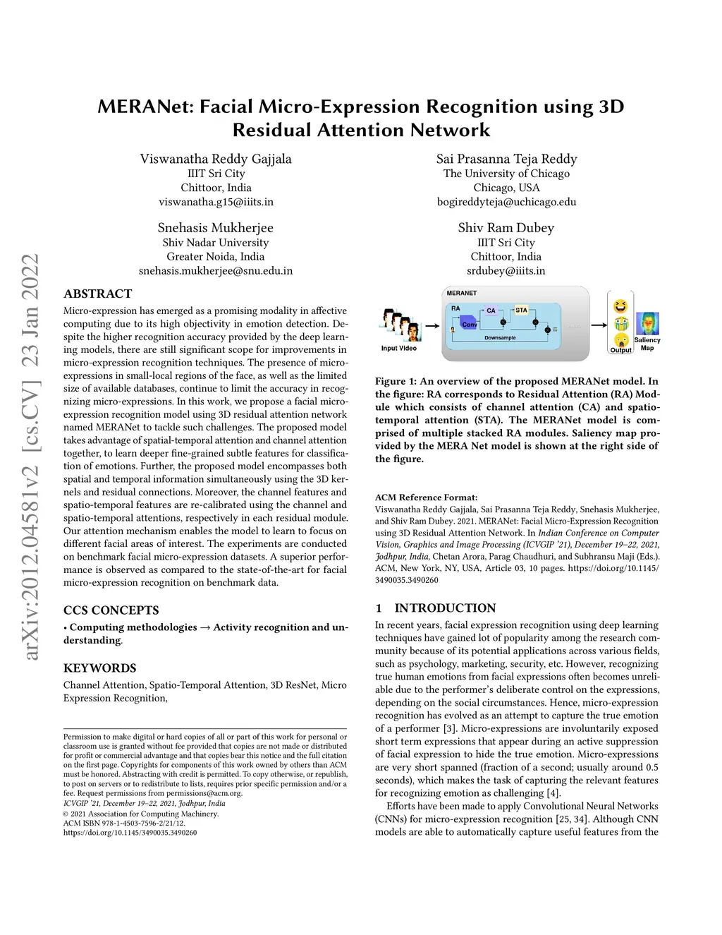 MERANet: Facial Micro-Expression Recognition using 3D Residual Attention