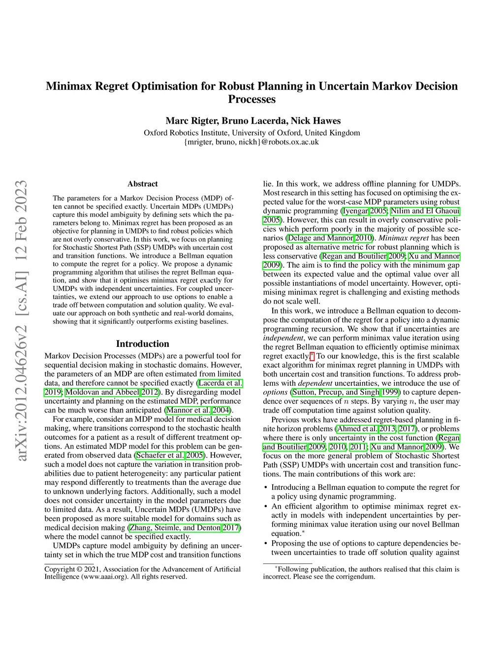 Minimax Regret Optimisation for Robust Planning in Uncertain Markov
