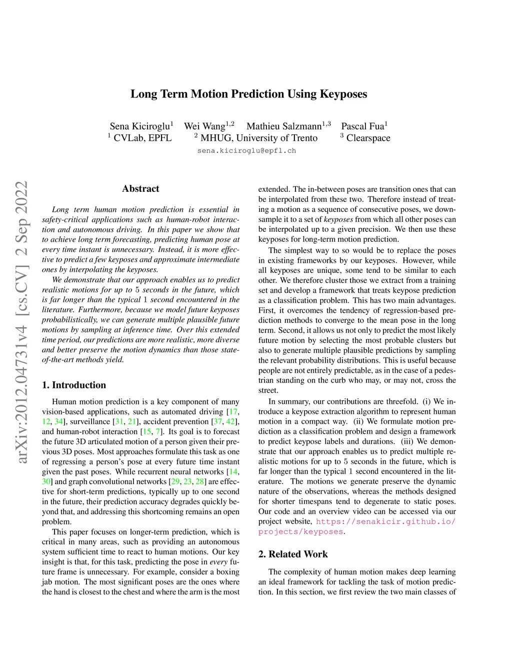 Long Term Motion Prediction Using Keyposes