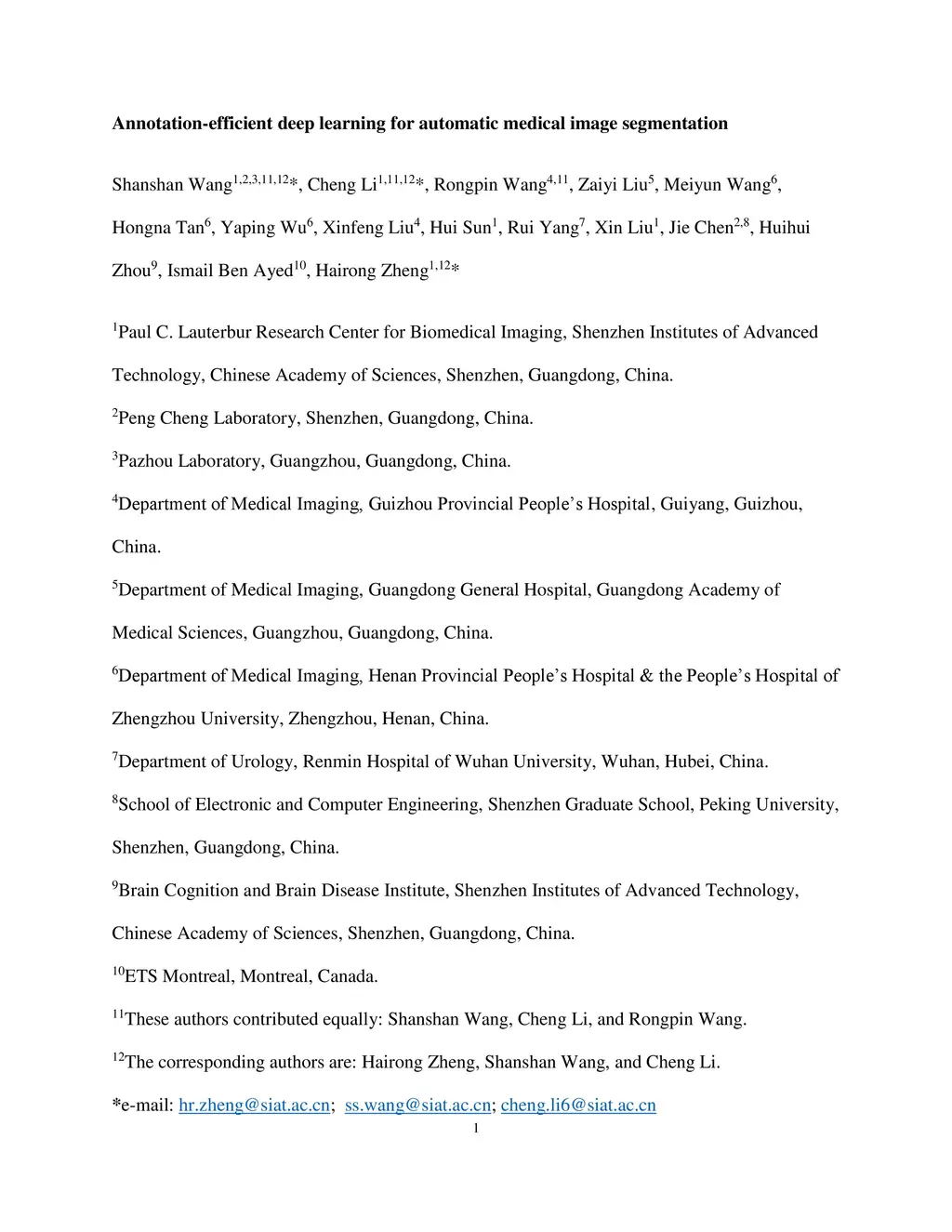 Automatic medical image segmentation plays a critical role in scientific research and medical care. Existing high-performance deep learning methods typically rely on large training datasets with high-quality manual annotations, which are difficult to obtain in many clinical applications. Here, we introduce Annotation-effIcient Deep lEarning (AIDE), an open-source framework to handle imperfect training datasets. Methodological analyses and empirical evaluations are conducted, and we demonstrate that AIDE surpasses conventional fully-supervised models by presenting better performance on open datasets possessing scarce or noisy annotations. We further test AIDE in a real-life case study for breast tumor segmentation. Three datasets containing 11,852 breast images from three medical centers are employed, and AIDE, utilizing 10% training annotations, consistently produces segmentation maps comparable to those generated by fully-supervised counterparts or provided by independent radiologists. The 10-fold enhanced efficiency in utilizing expert labels has the potential to promote a wide range of biomedical applications.