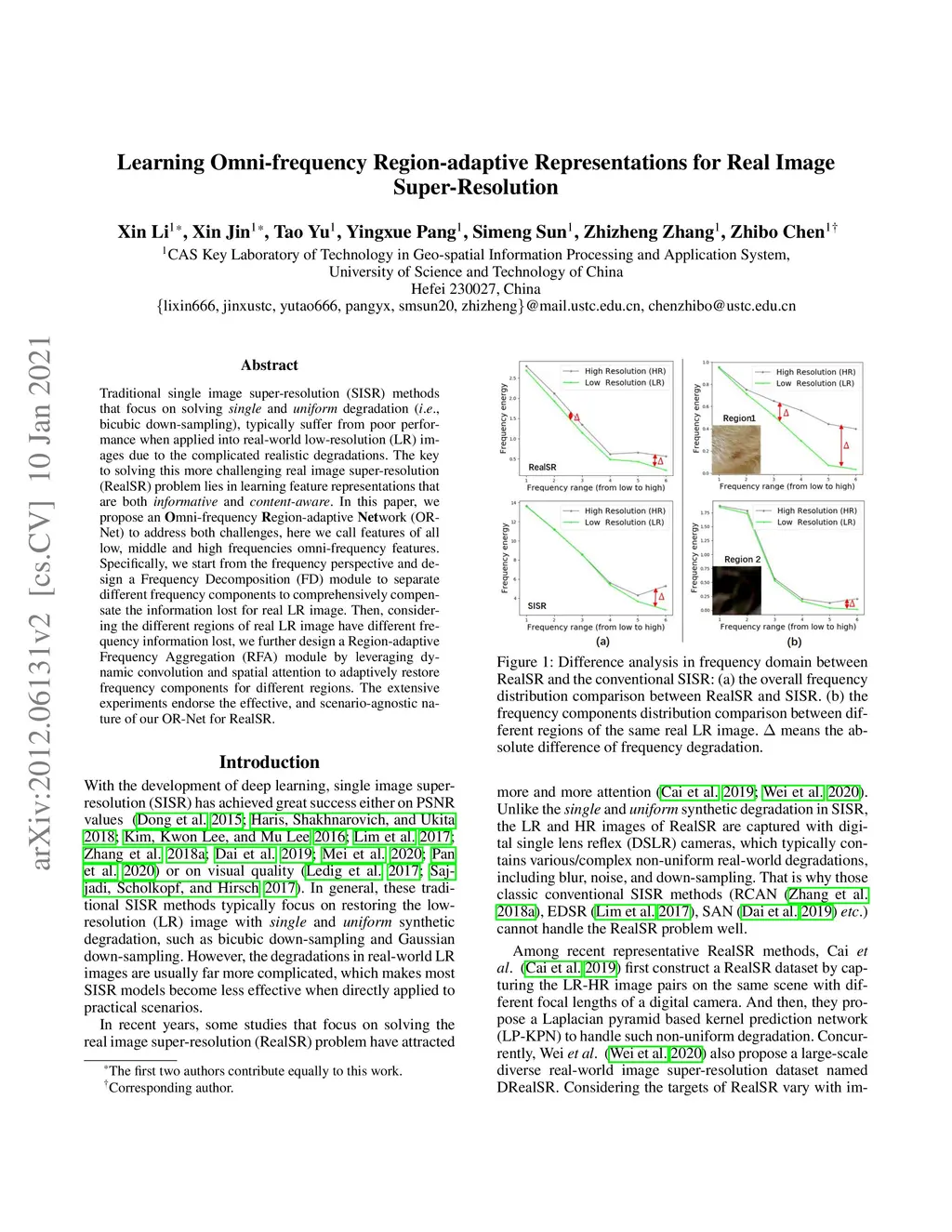 Learning Omni-frequency Region-adaptive Representations for Real Image