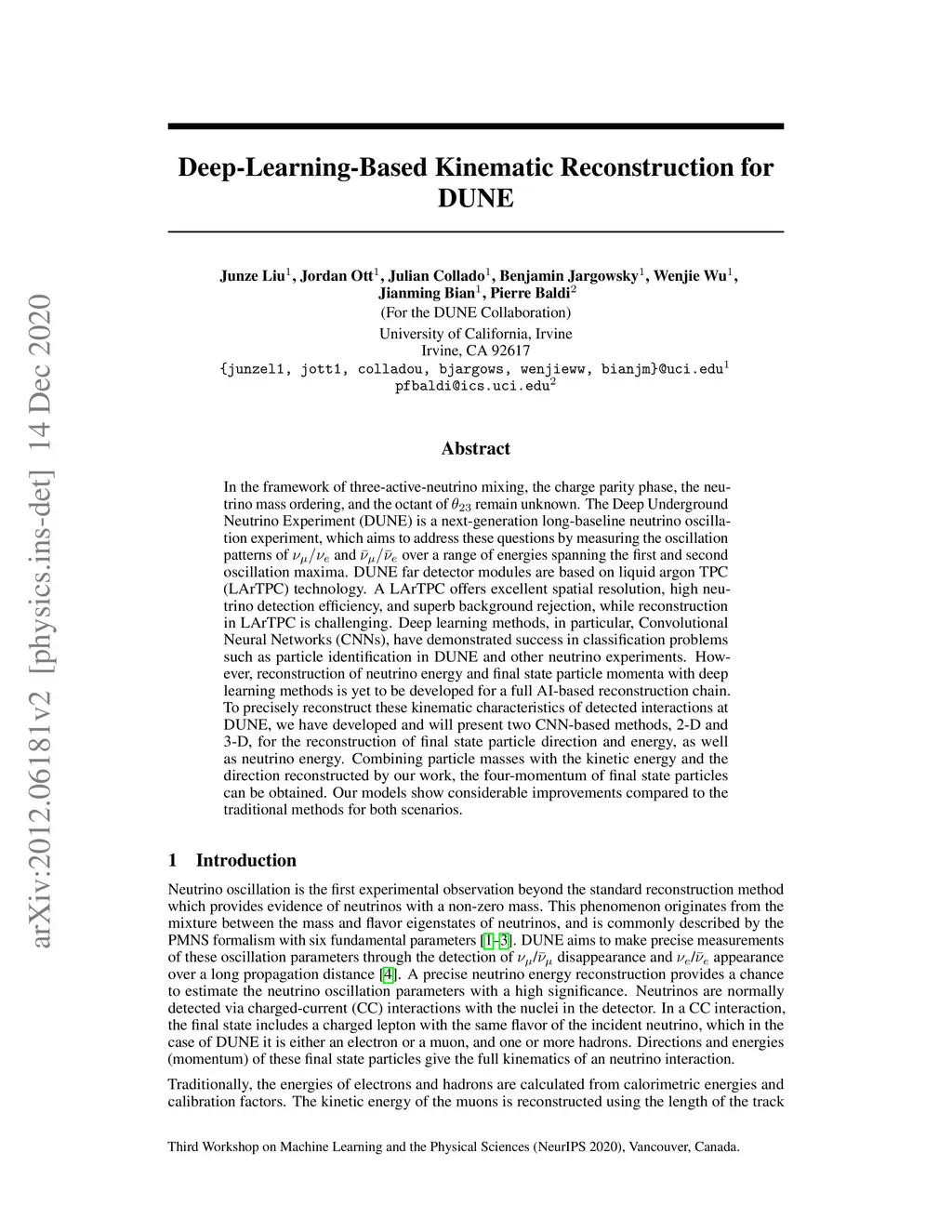 Deep-Learning-Based Kinematic Reconstruction for DUNE