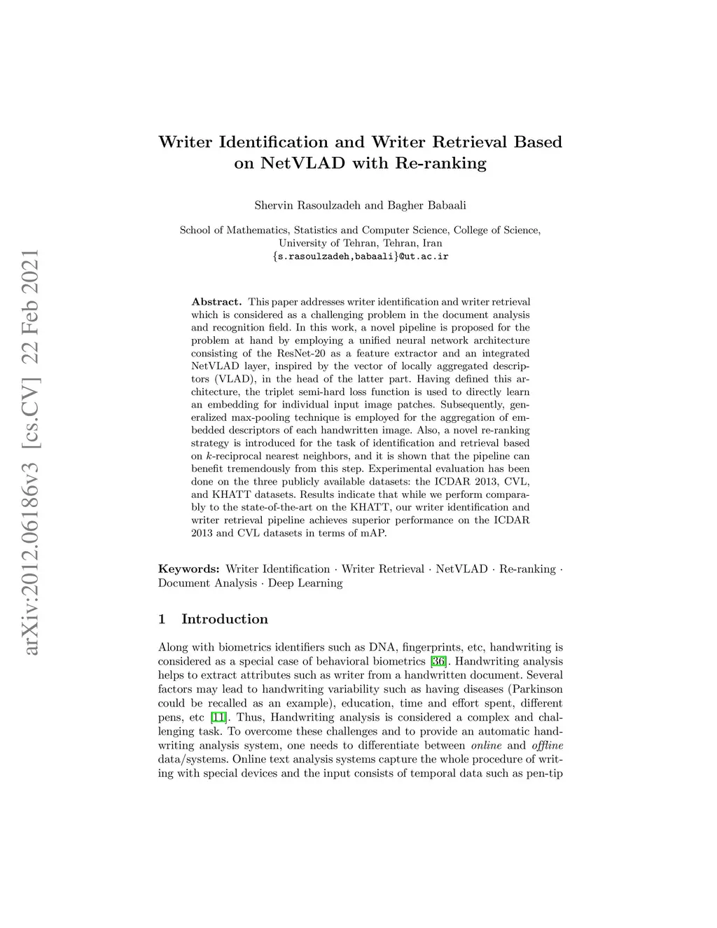 Writer Identification and Writer Retrieval Based on NetVLAD with