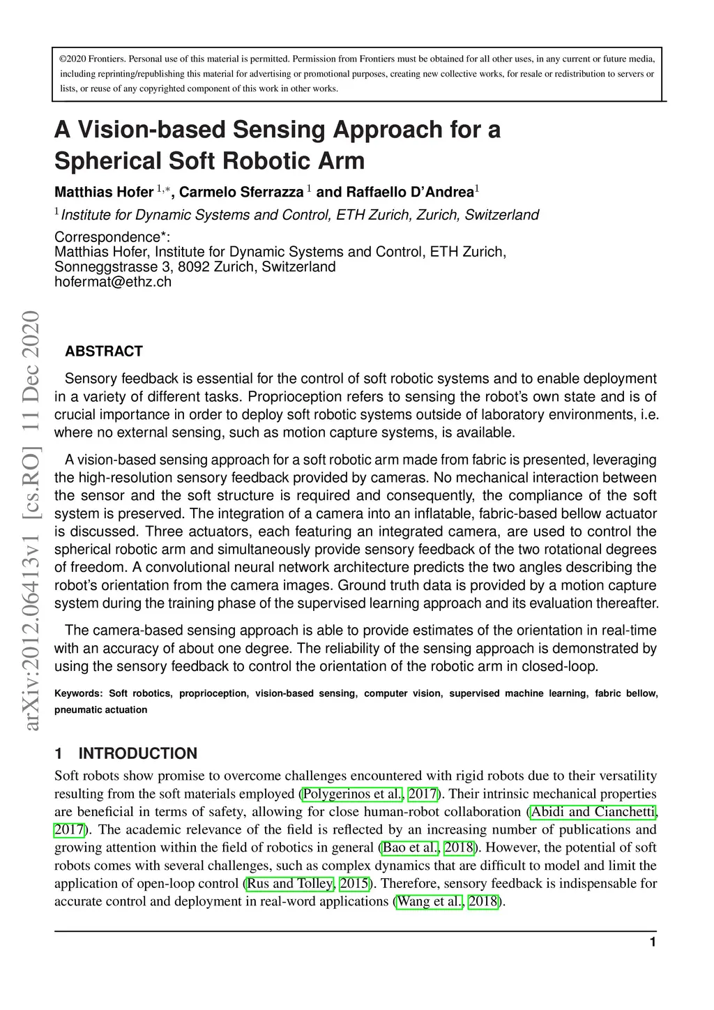 A Vision-based Sensing Approach for a Spherical Soft Robotic Arm