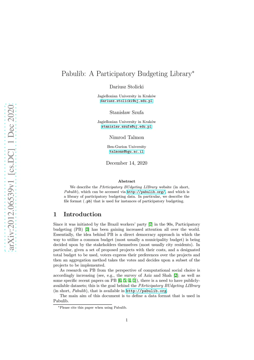 Pabulib: A Participatory Budgeting Library