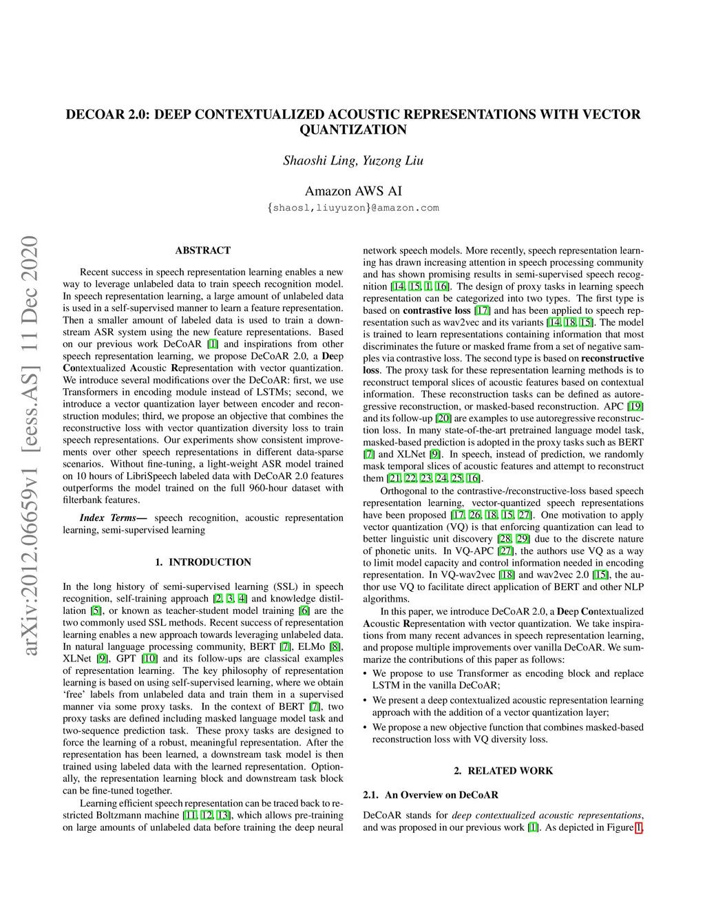 DeCoAR 2.0: Deep Contextualized Acoustic Representations with Vector
