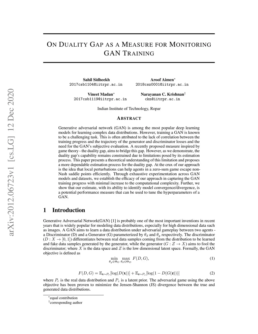 On Duality Gap as a Measure for Monitoring GAN Training