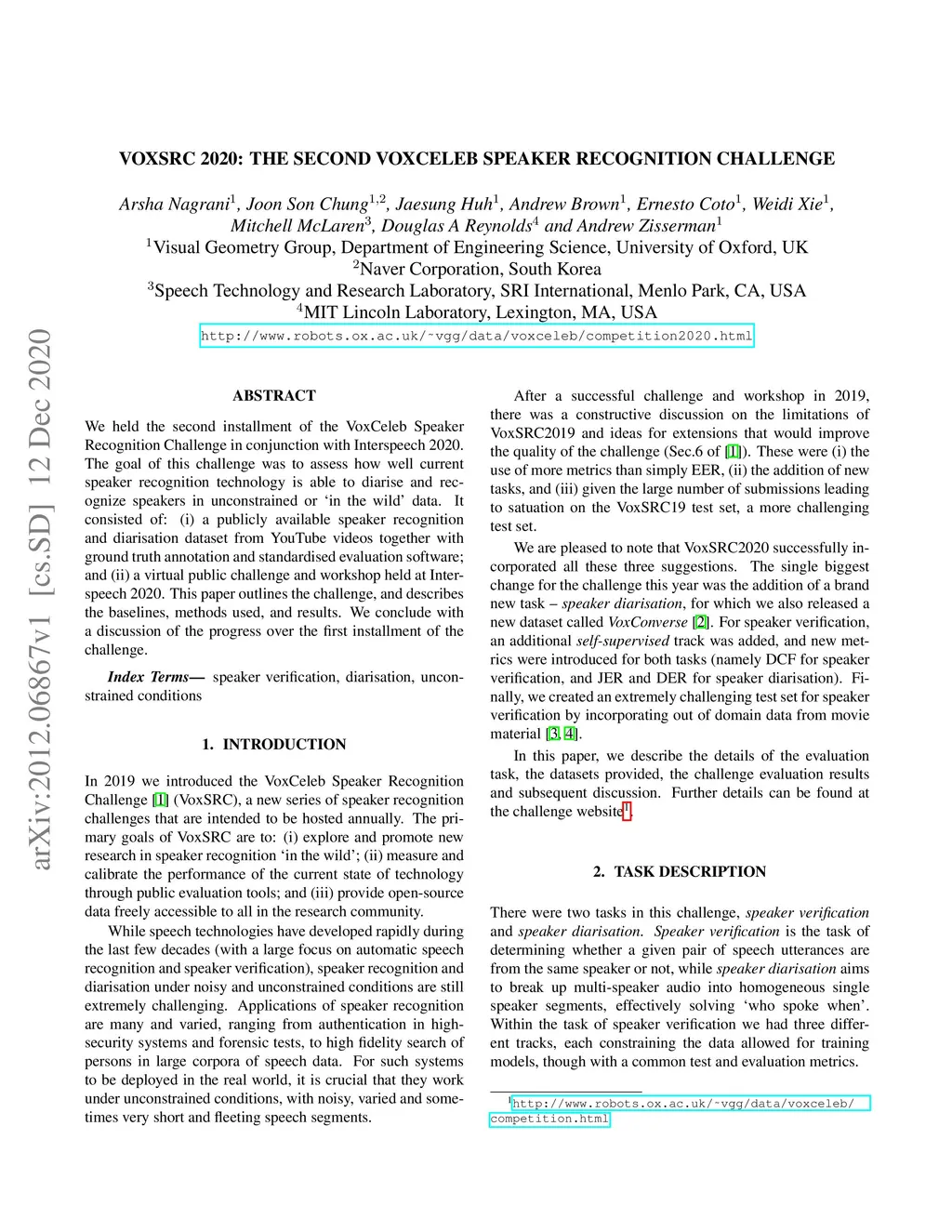 VoxSRC 2020: The Second VoxCeleb Speaker Recognition Challenge