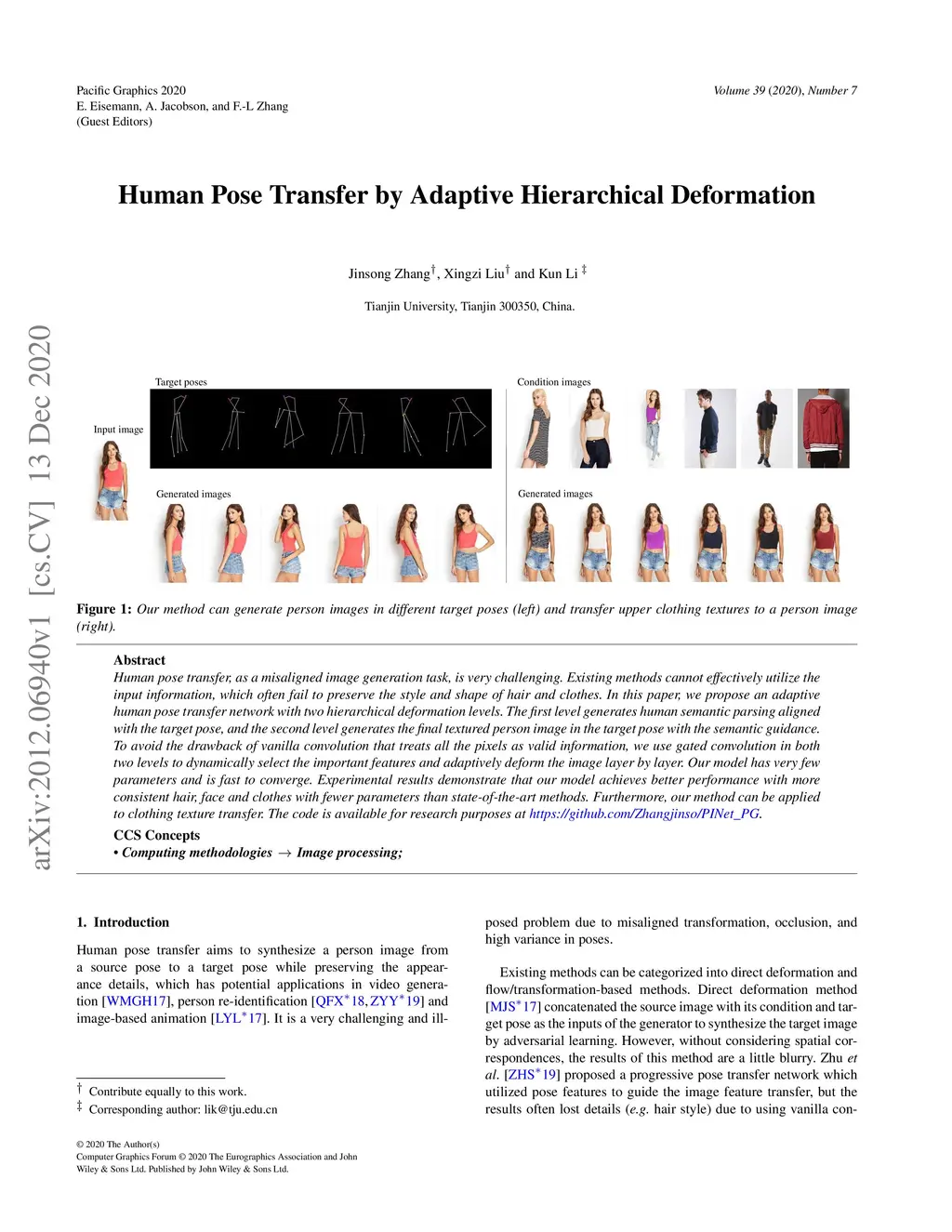 Human Pose Transfer by Adaptive Hierarchical Deformation