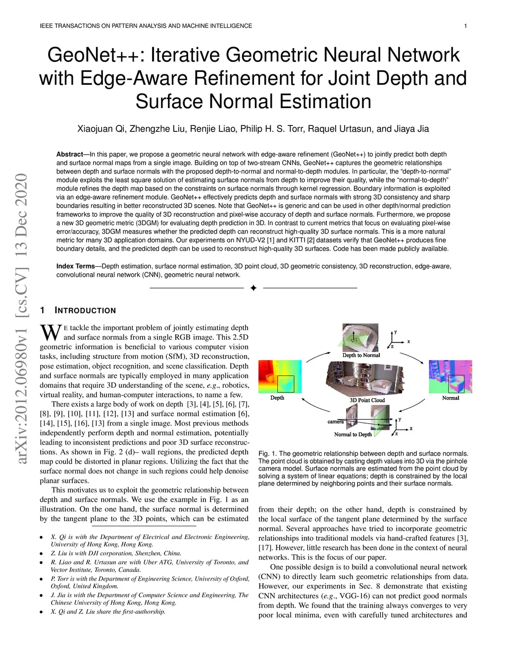 In this paper, we propose a geometric neural network with edge-aware refinement (GeoNet++) to jointly predict both depth and surface normal maps from a single image. Building on top of two-stream CNNs, GeoNet++ captures the geometric relationships between depth and surface normals with the proposed depth-to-normal and normal-to-depth modules. In particular, the "depth-to-normal" module exploits the least square solution of estimating surface normals from depth to improve their quality, while the "normal-to-depth" module refines the depth map based on the constraints on surface normals through kernel regression. Boundary information is exploited via an edge-aware refinement module. GeoNet++ effectively predicts depth and surface normals with strong 3D consistency and sharp boundaries resulting in better reconstructed 3D scenes. Note that GeoNet++ is generic and can be used in other depth/normal prediction frameworks to improve the quality of 3D reconstruction and pixel-wise accuracy of depth and surface normals. Furthermore, we propose a new 3D geometric metric (3DGM) for evaluating depth prediction in 3D. In contrast to current metrics that focus on evaluating pixel-wise error/accuracy, 3DGM measures whether the predicted depth can reconstruct high-quality 3D surface normals. This is a more natural metric for many 3D application domains. Our experiments on NYUD-V2 and KITTI datasets verify that GeoNet++ produces fine boundary details, and the predicted depth can be used to reconstruct high-quality 3D surfaces. Code has been made publicly available.