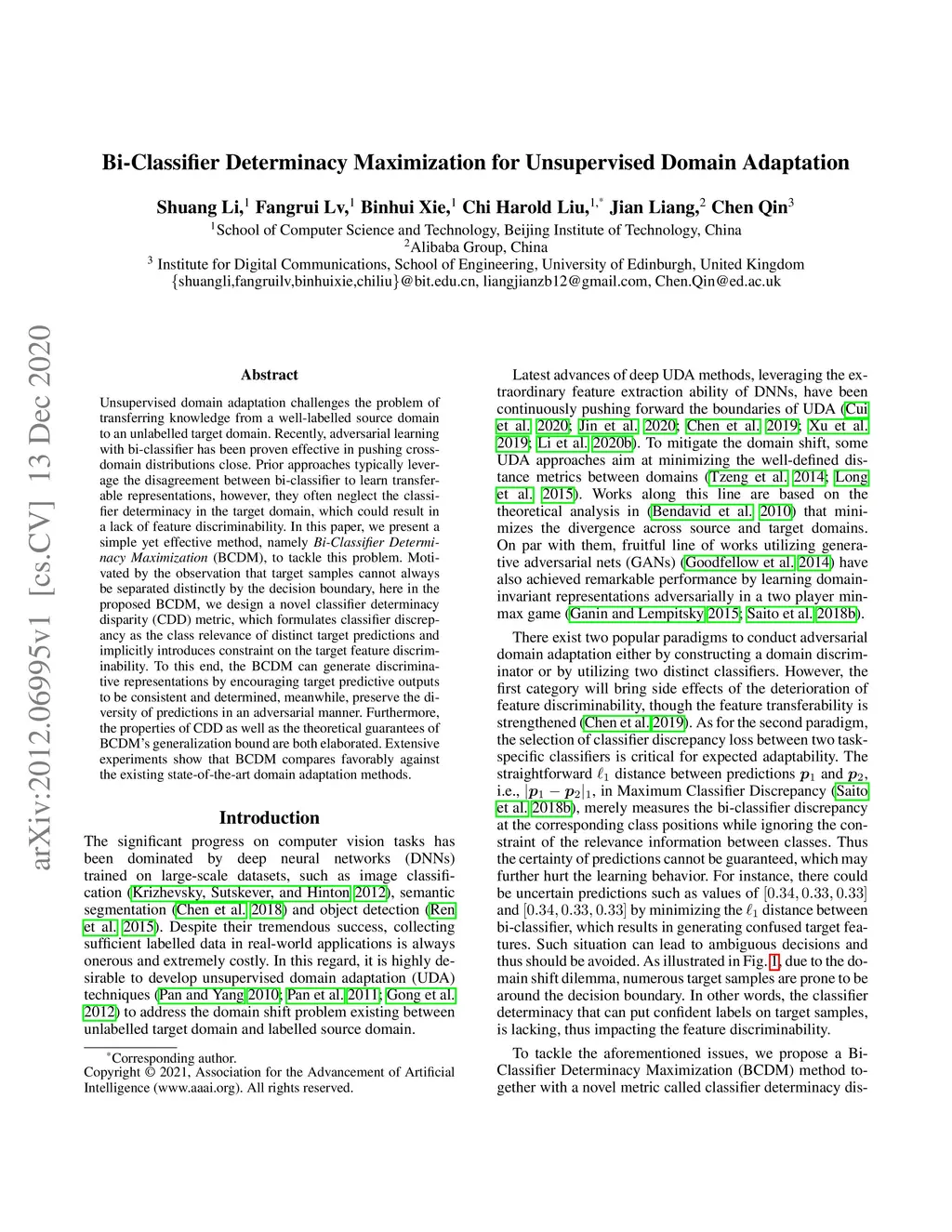 Bi-Classifier Determinacy Maximization for Unsupervised Domain