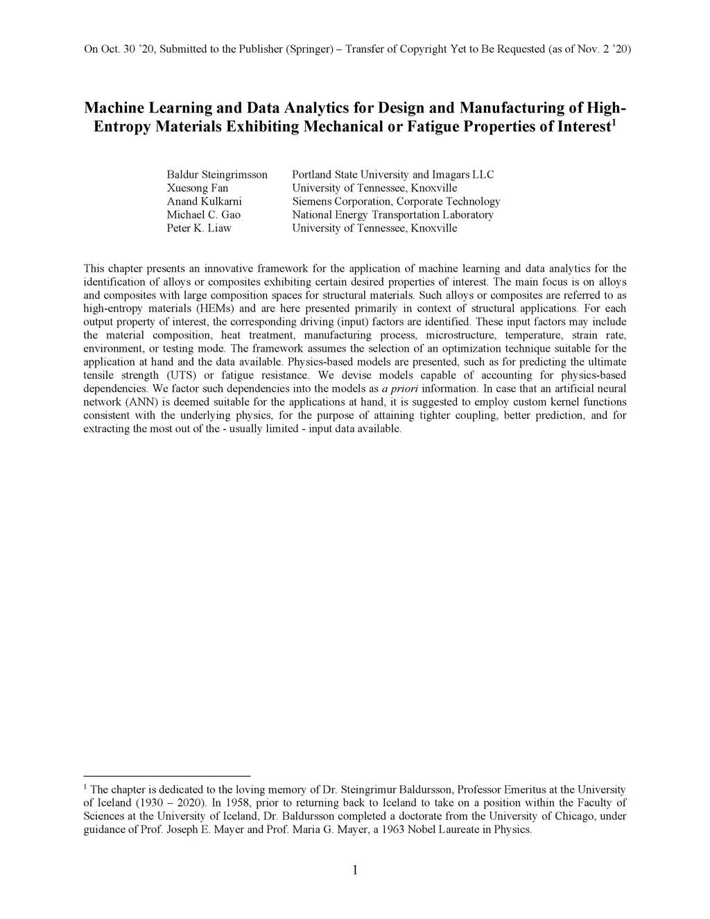 This chapter presents an innovative framework for the application of machine learning and data analytics for the identification of alloys or composites exhibiting certain desired properties of interest. The main focus is on alloys and composites with large composition spaces for structural materials. Such alloys or composites are referred to as high-entropy materials (HEMs) and are here presented primarily in context of structural applications. For each output property of interest, the corresponding driving (input) factors are identified. These input factors may include the material composition, heat treatment, manufacturing process, microstructure, temperature, strain rate, environment, or testing mode. The framework assumes the selection of an optimization technique suitable for the application at hand and the data available. Physics-based models are presented, such as for predicting the ultimate tensile strength (UTS) or fatigue resistance. We devise models capable of accounting for physics-based dependencies. We factor such dependencies into the models as a priori information. In case that an artificial neural network (ANN) is deemed suitable for the applications at hand, it is suggested to employ custom kernel functions consistent with the underlying physics, for the purpose of attaining tighter coupling, better prediction, and for extracting the most out of the - usually limited - input data available.