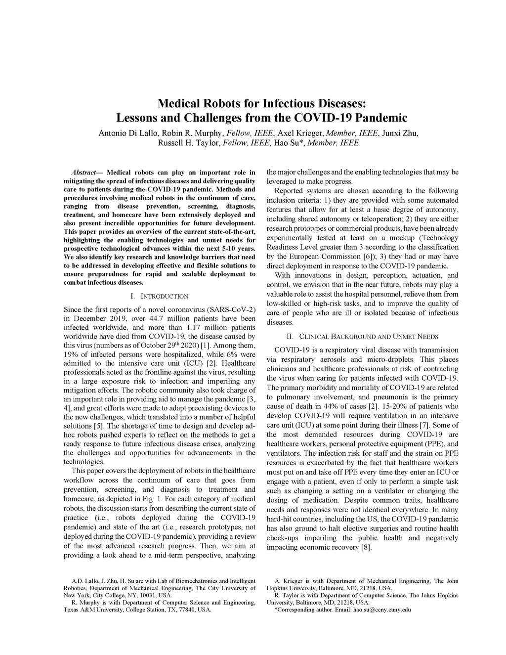 Medical Robots for Infectious Diseases: Lessons and Challenges from the