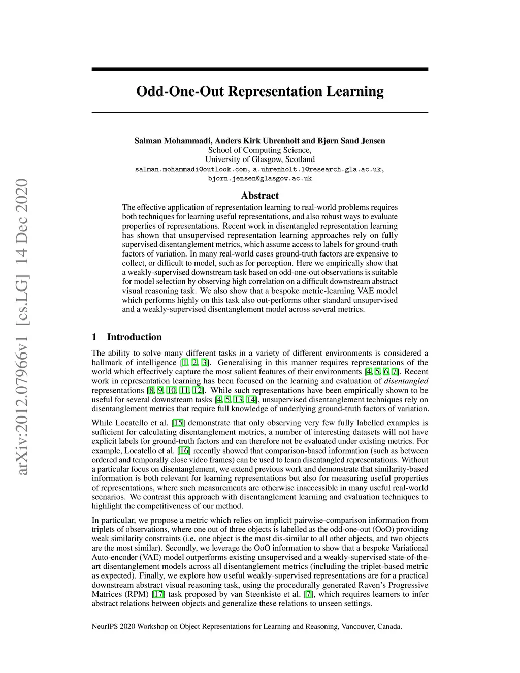 Odd-One-Out Representation Learning