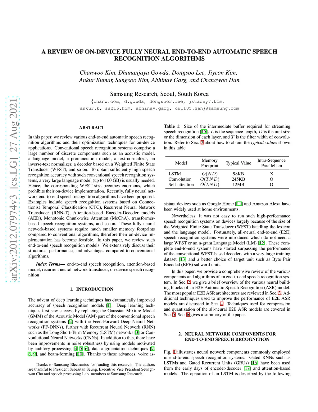 A review of on-device fully neural end-to-end automatic speech