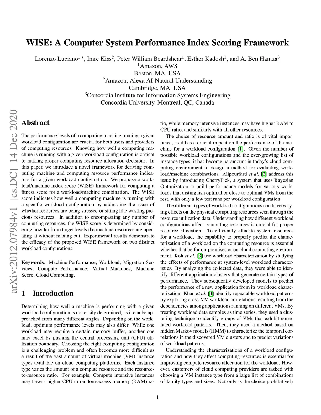 The performance levels of a computing machine running a given workload configuration are crucial for both users and providers of computing resources. Knowing how well a computing machine is running with a given workload configuration is critical to making proper computing resource allocation decisions. In this paper, we introduce a novel framework for deriving computing machine and computing resource performance indicators for a given workload configuration. We propose a workload/machine index score (WISE) framework for computing a fitness score for a workload/machine combination. The WISE score indicates how well a computing machine is running with a specific workload configuration by addressing the issue of whether resources are being stressed or sitting idle wasting precious resources. In addition to encompassing any number of computing resources, the WISE score is determined by considering how far from target levels the machine resources are operating at without maxing out. Experimental results demonstrate the efficacy of the proposed WISE framework on two distinct workload configurations.