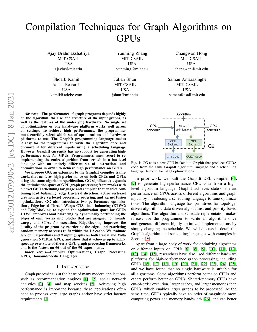 Compilation Techniques for Graph Algorithms on GPUs